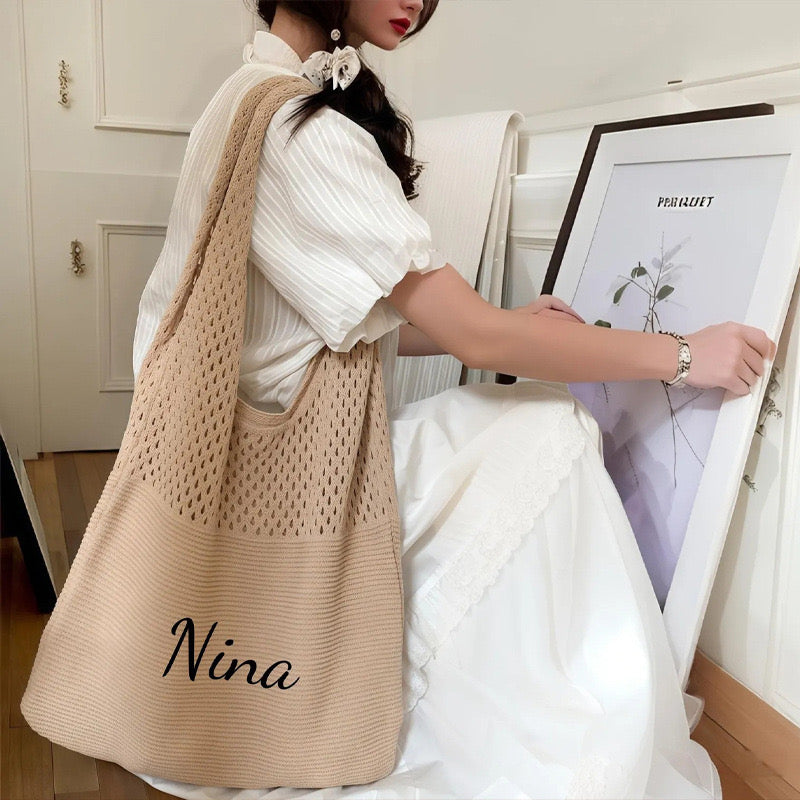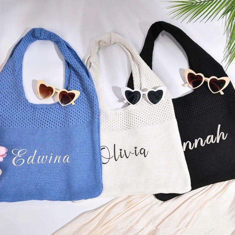 【オーダーメイド】名入れ 刺繍 ニットバッグ トートバッグ 多色