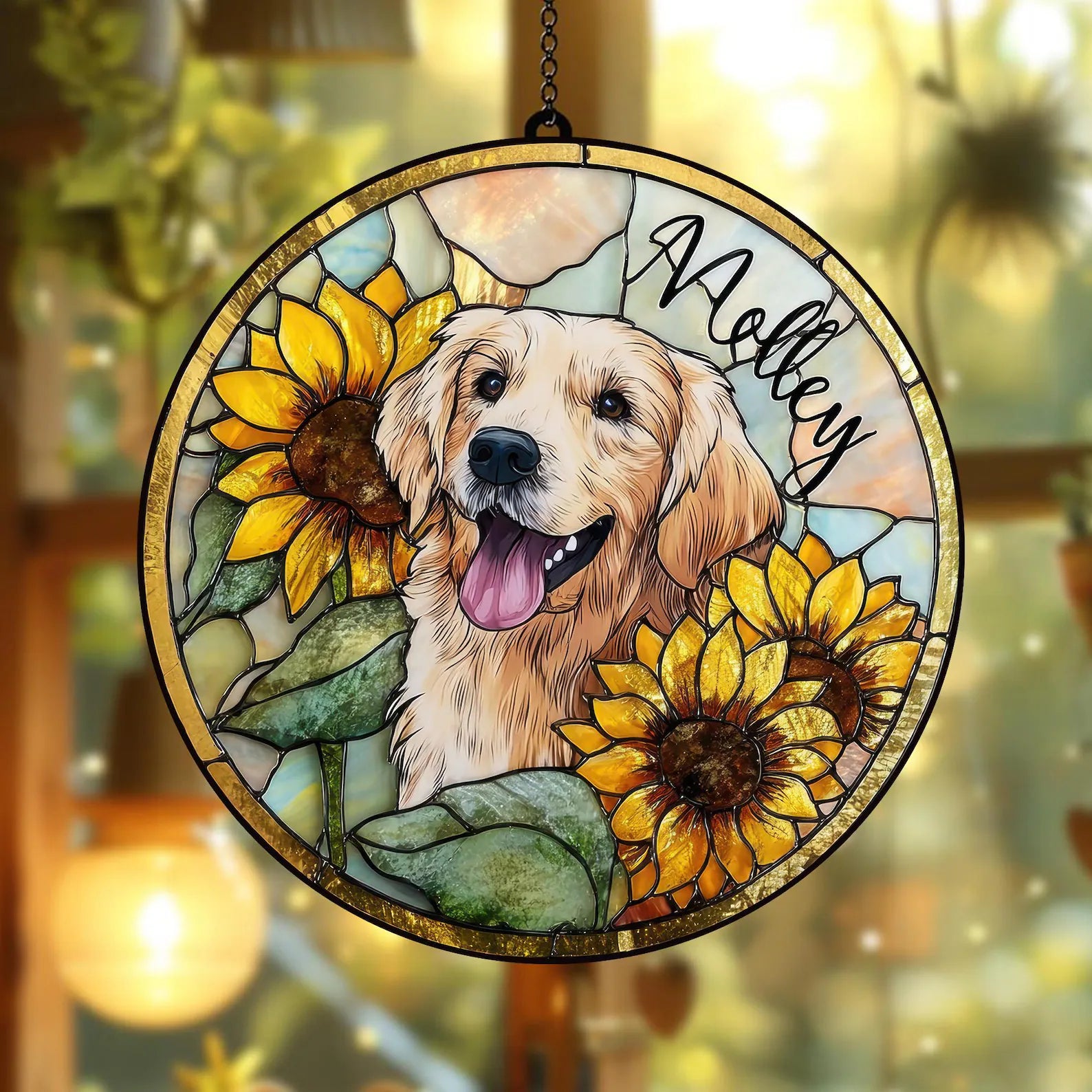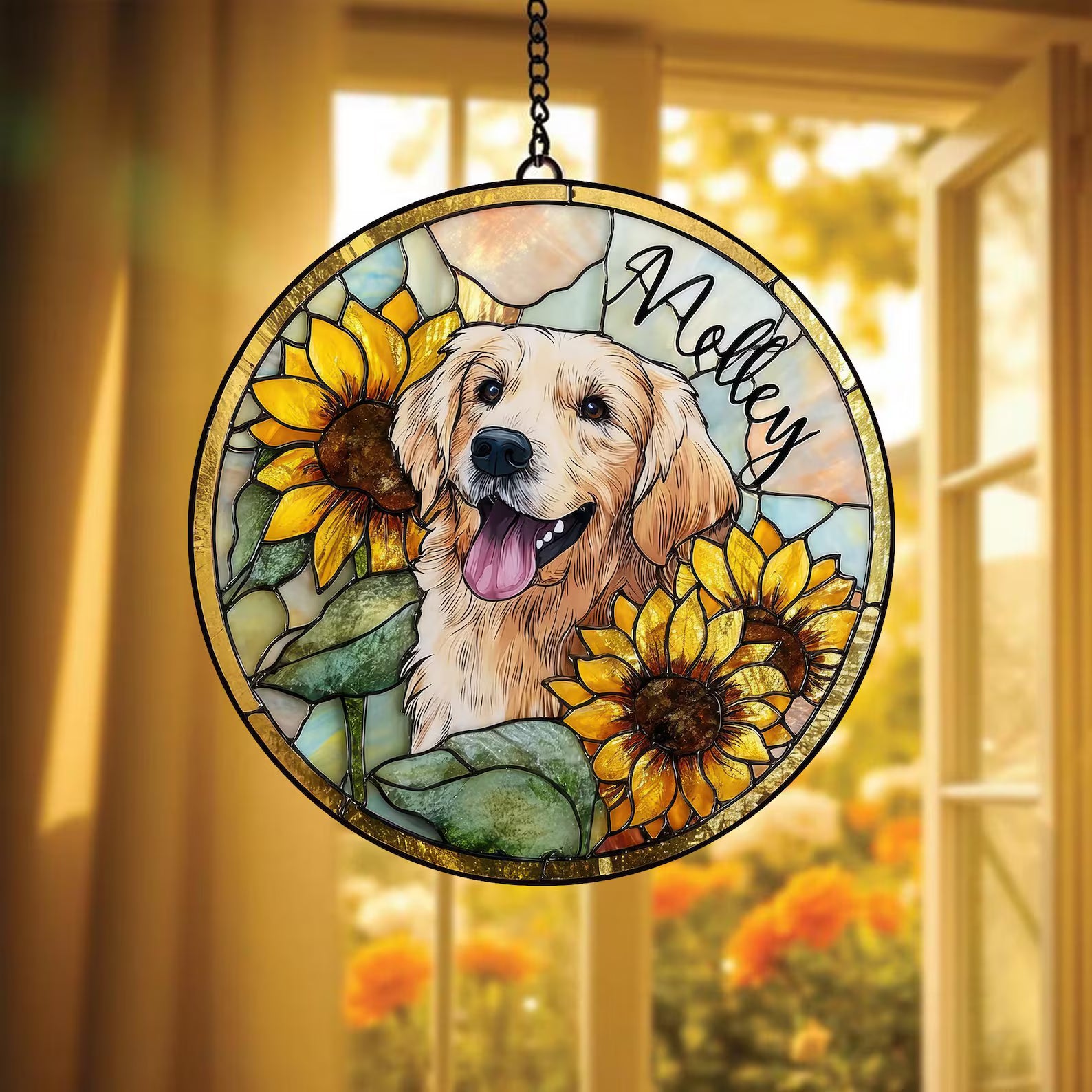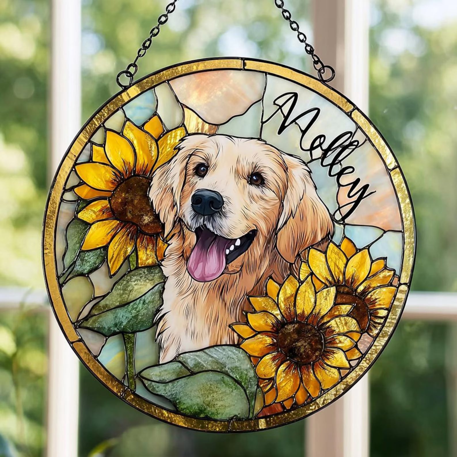 ペットの肖像 パーソナライズド ステンドグラス サンキャッチャー ひまわり