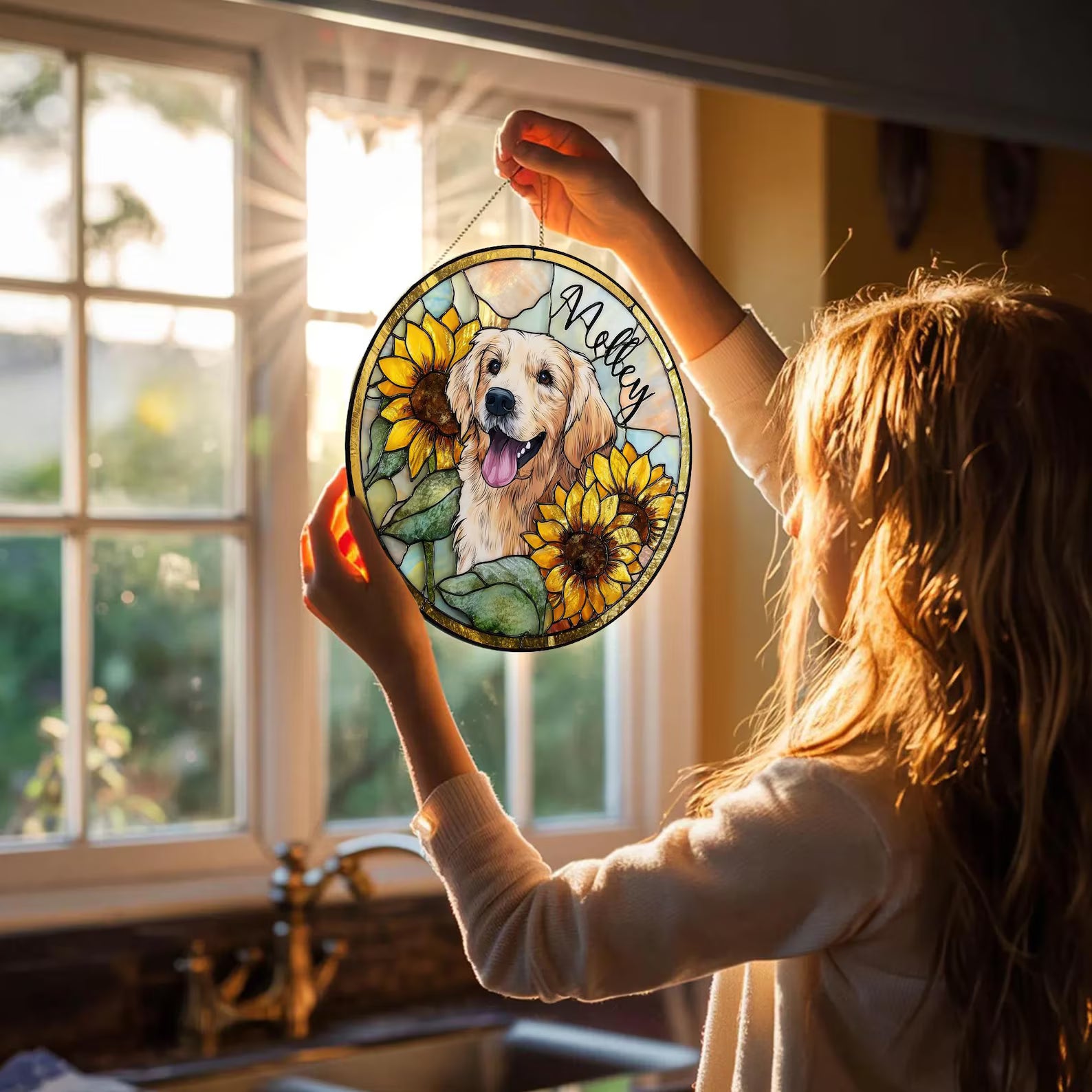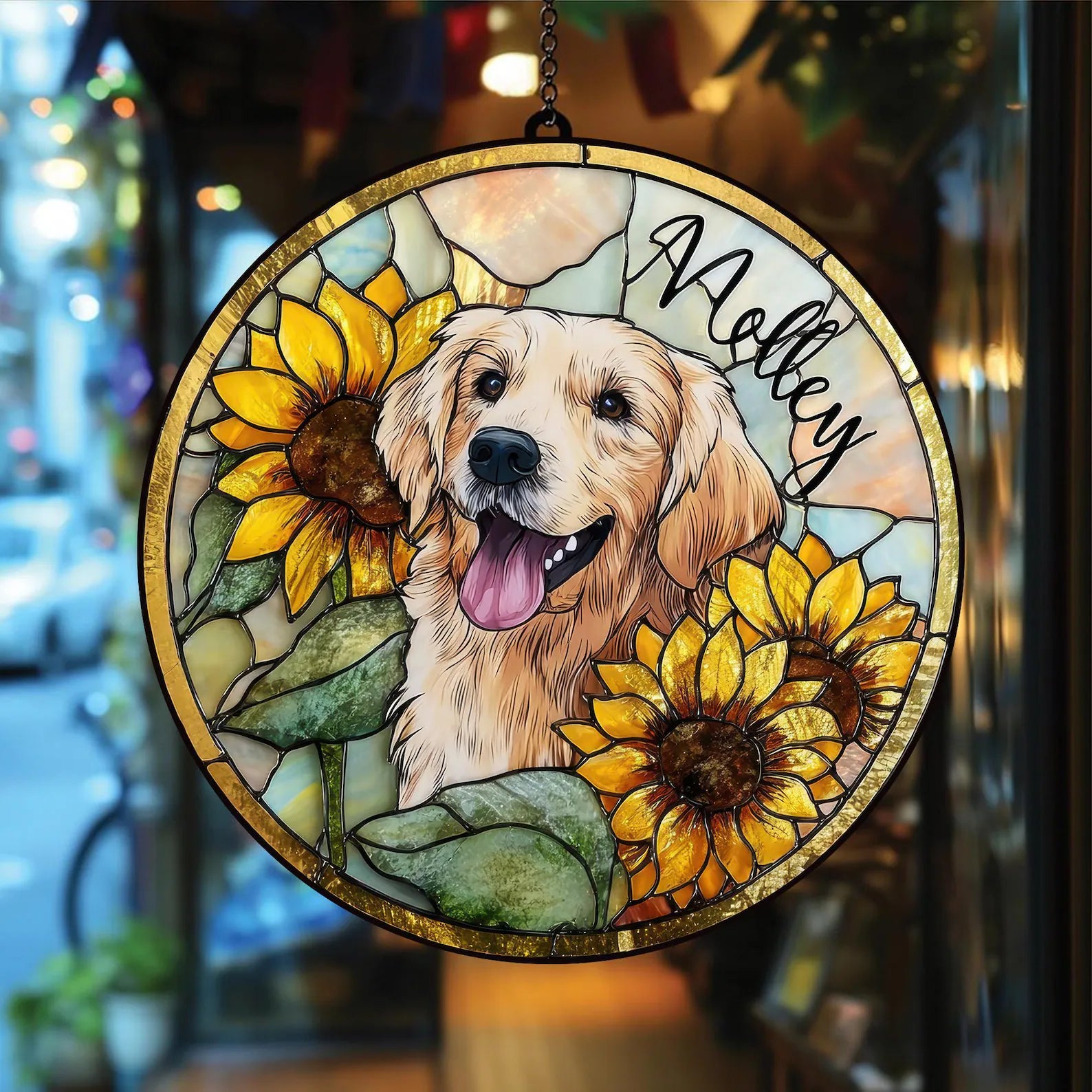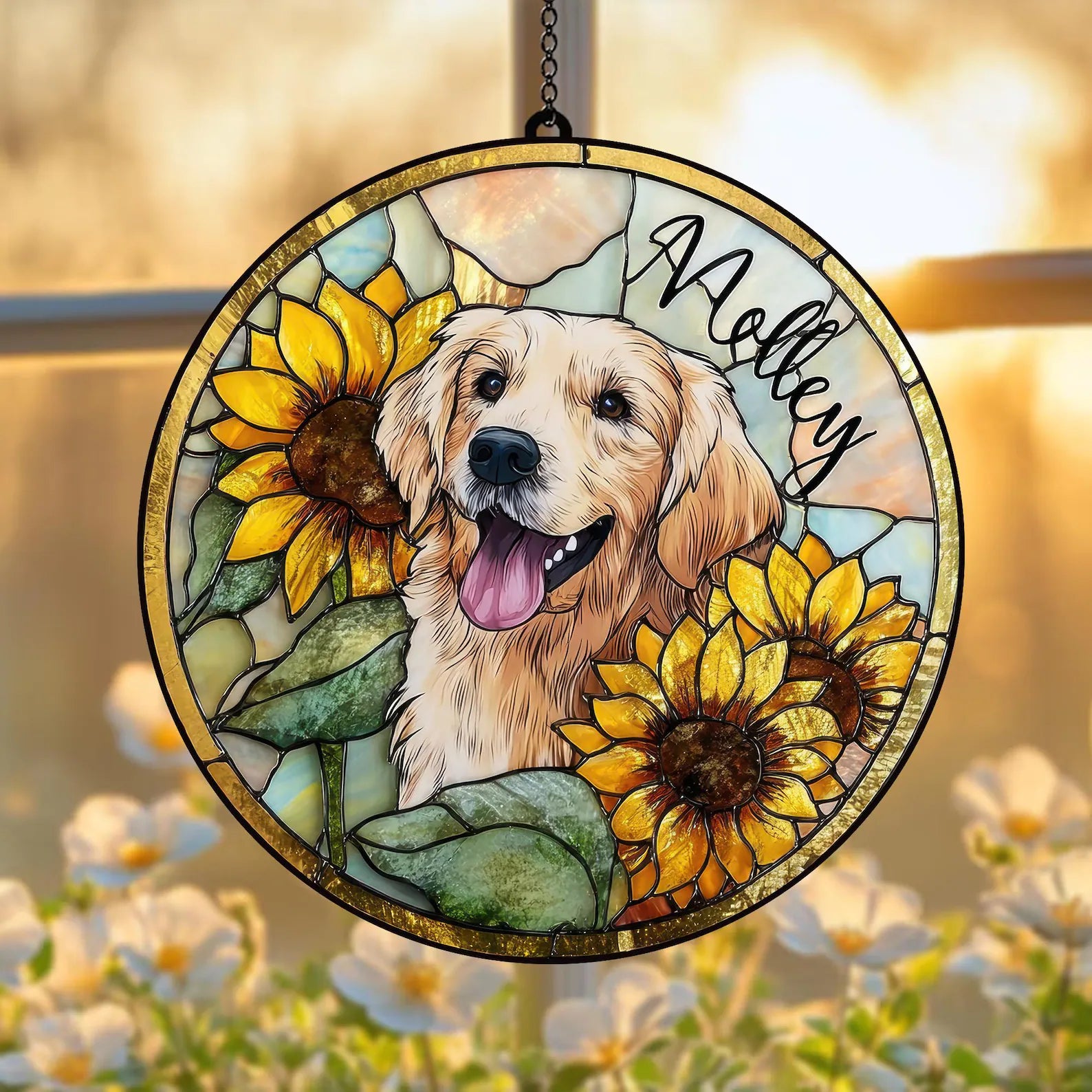 ペットの肖像 パーソナライズド ステンドグラス サンキャッチャー ひまわり