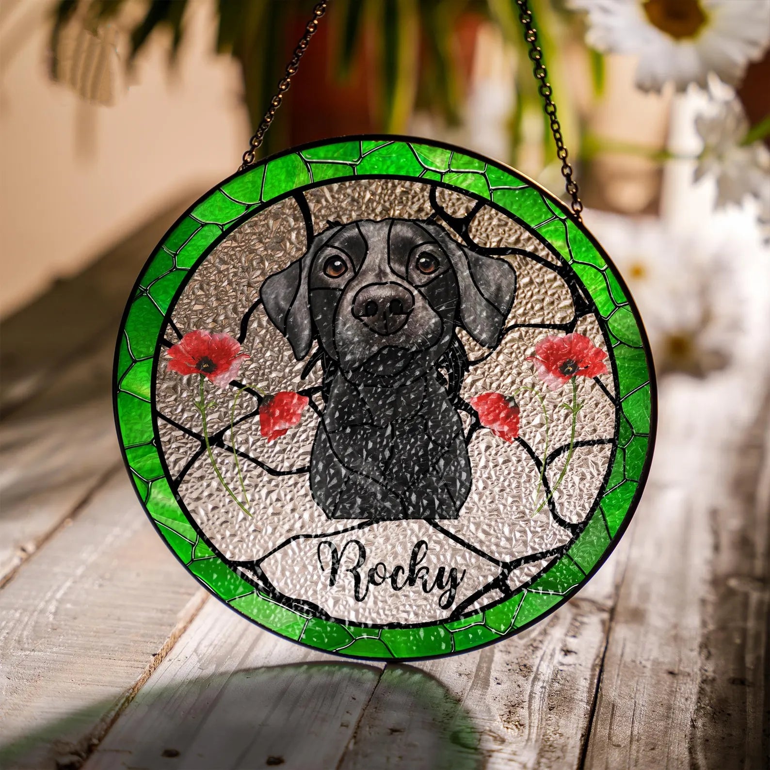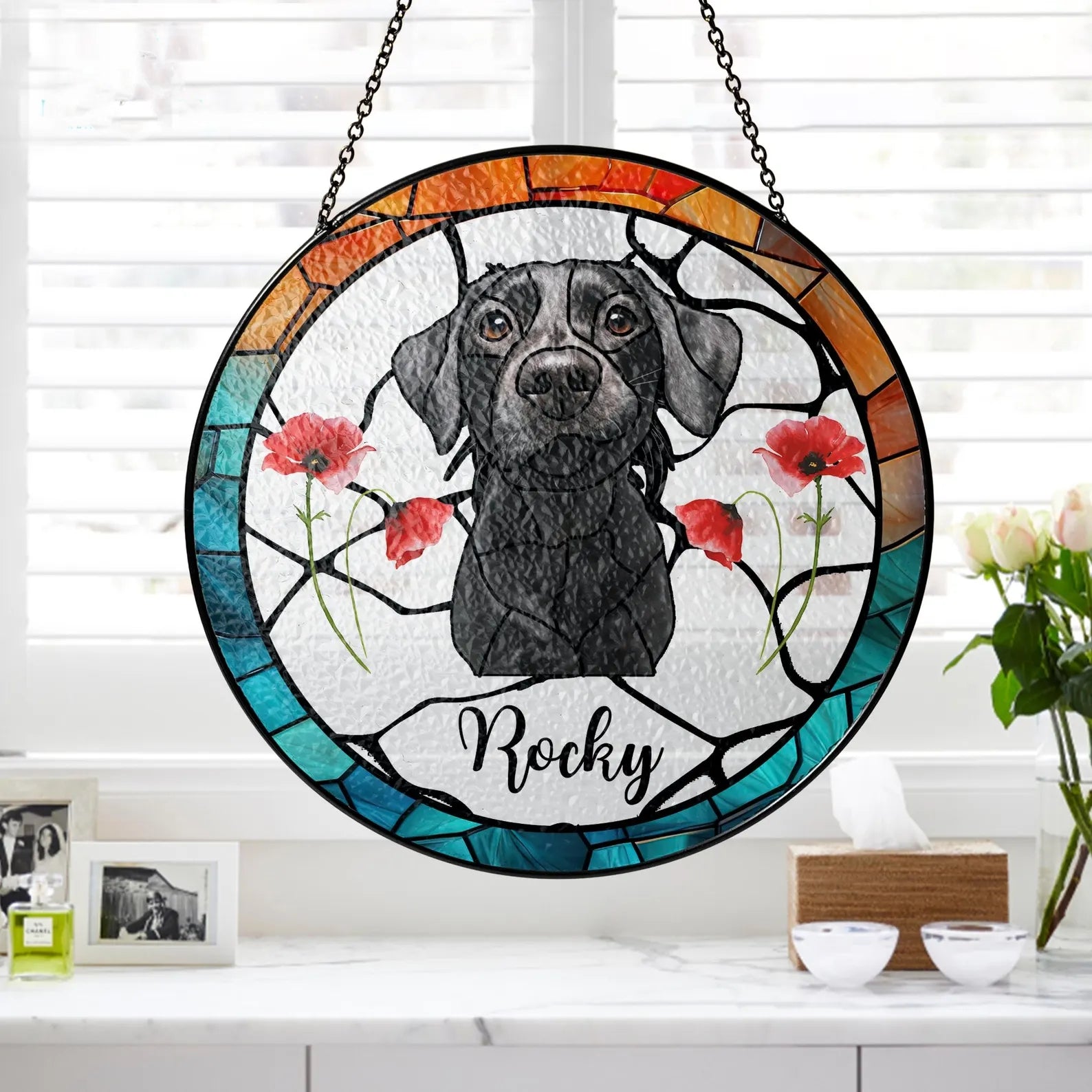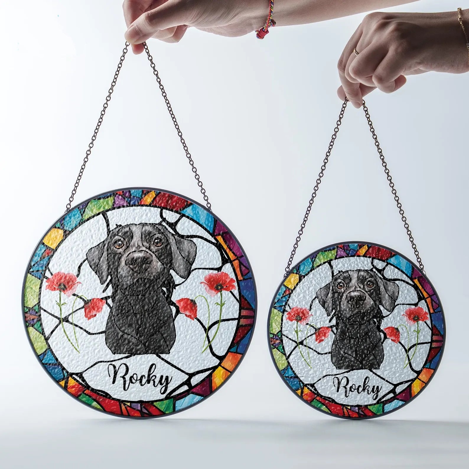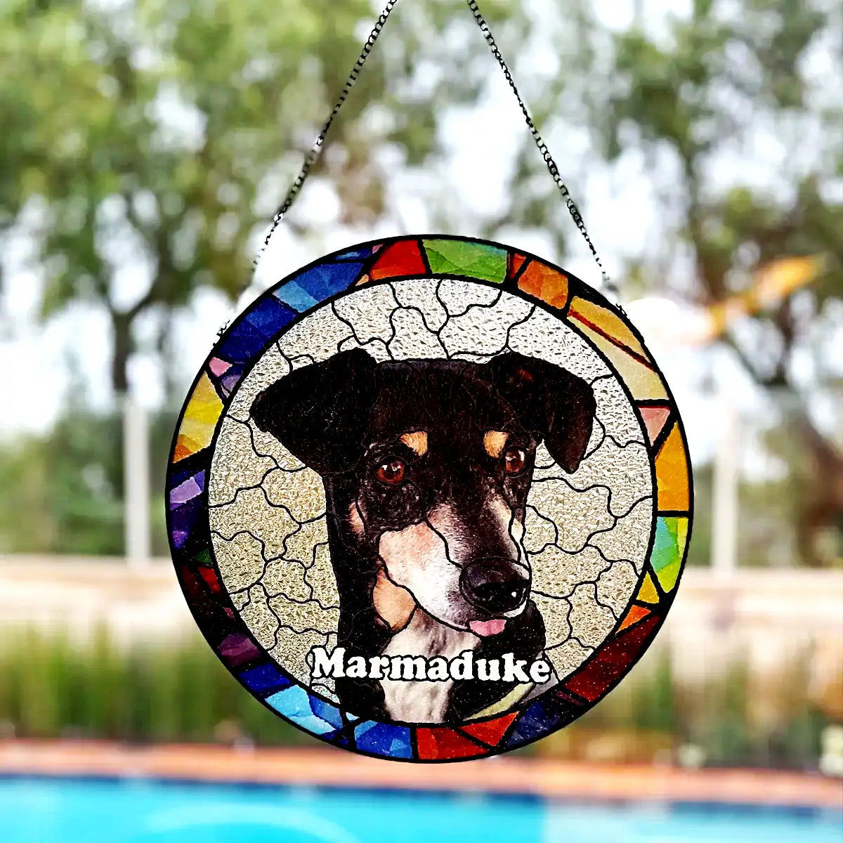 ペットの肖像 パーソナライズド ステンドグラス サンキャッチャー 純色背景