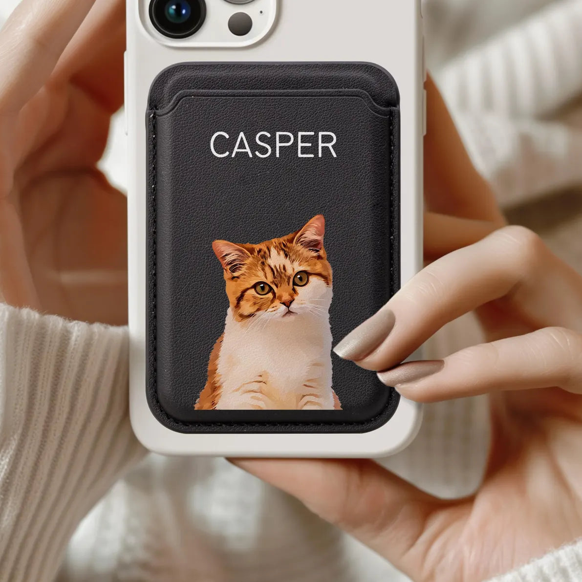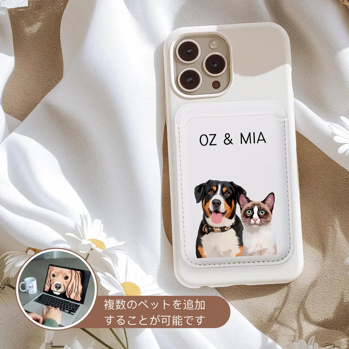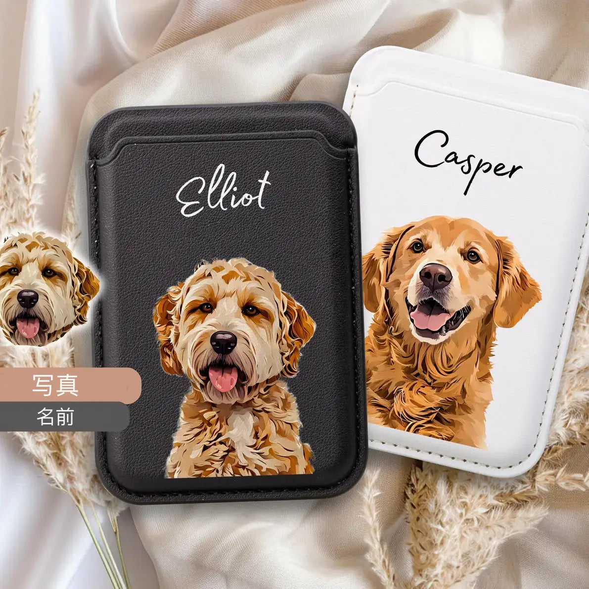 ペット写真+名前入り カスタムマグセーフ対応 スマホケース兼用カードホルダー MagSafe カードホルダー