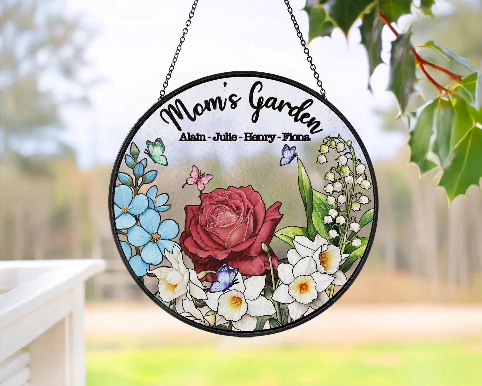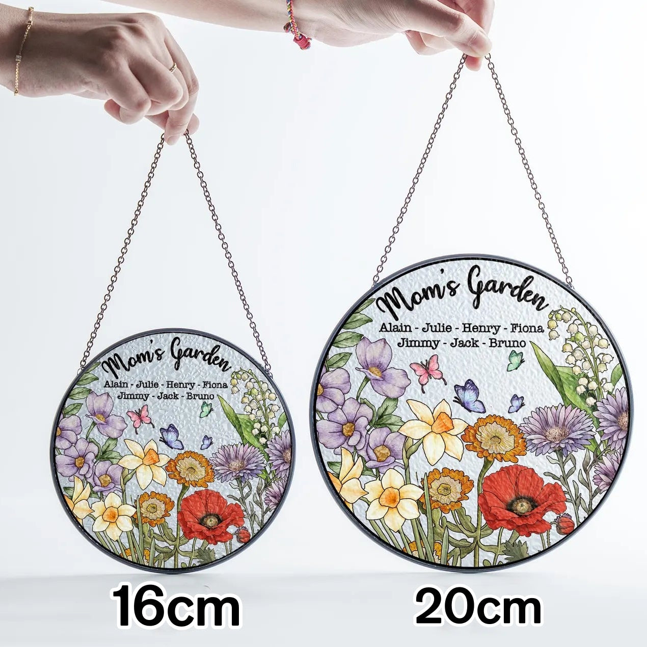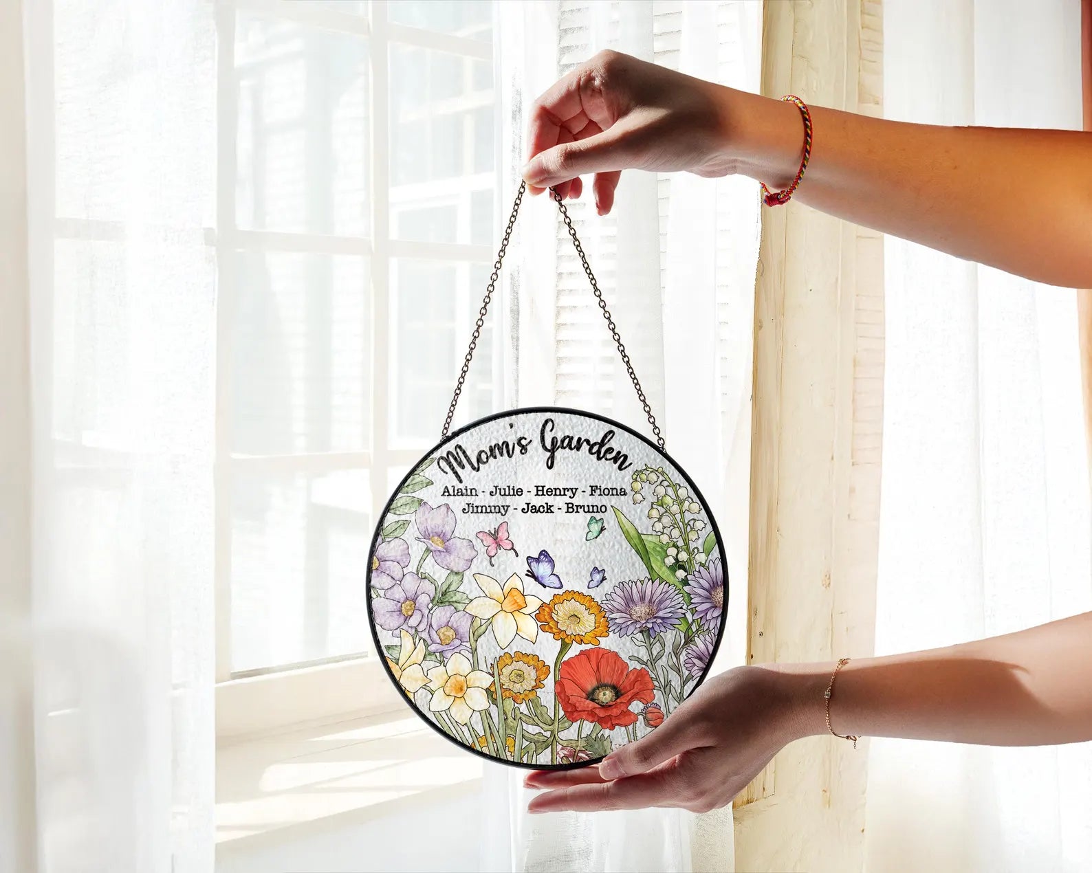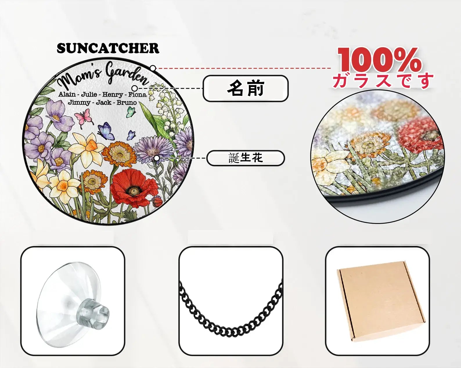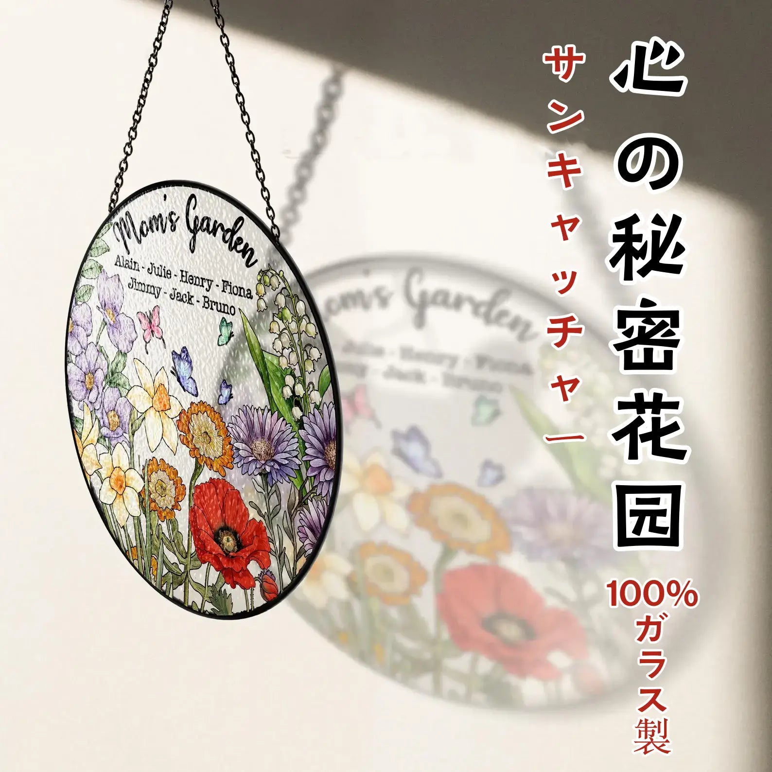 「家族の誕生花入り」パーソナライズド・グランドマズ・ガーデン ステンドグラスサンキャッチャー