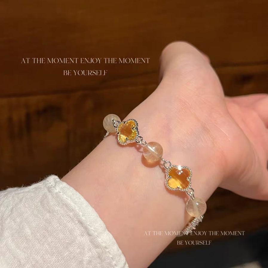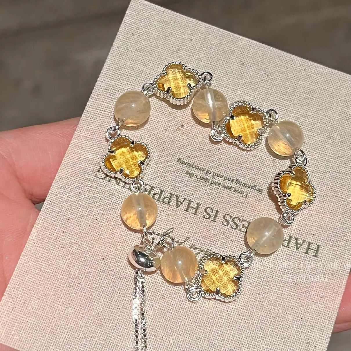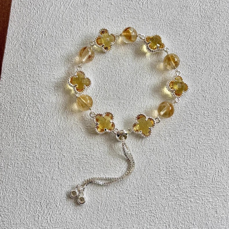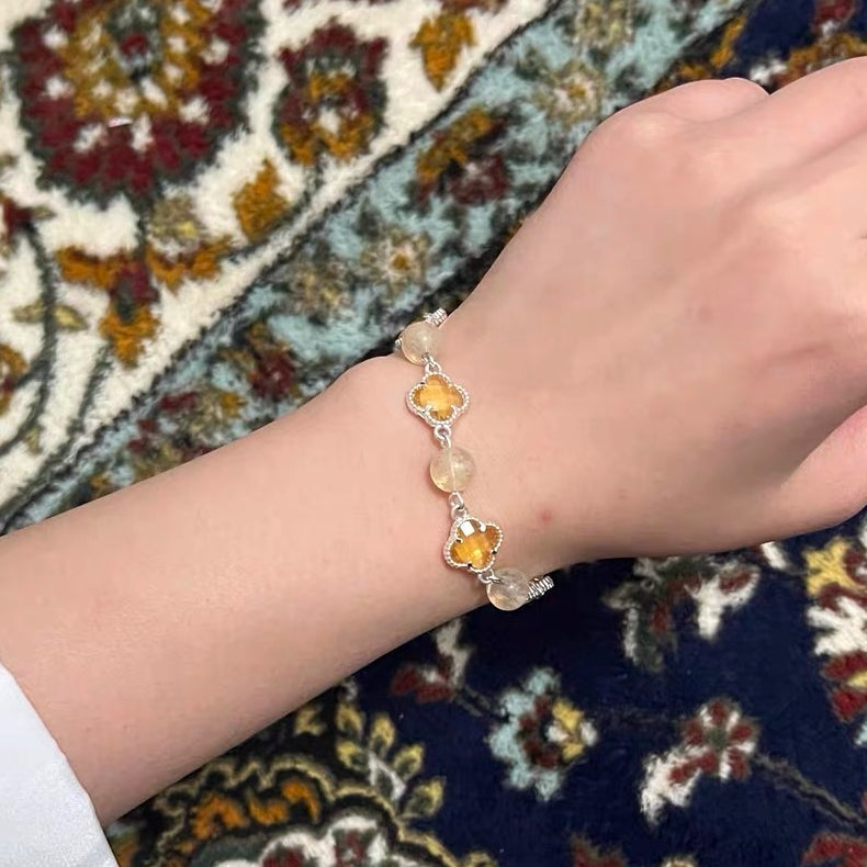 「開運・金運」幸運のクローバーとイエローフローライトの金運ブレスレット - 知恵と幸運で富を掴む