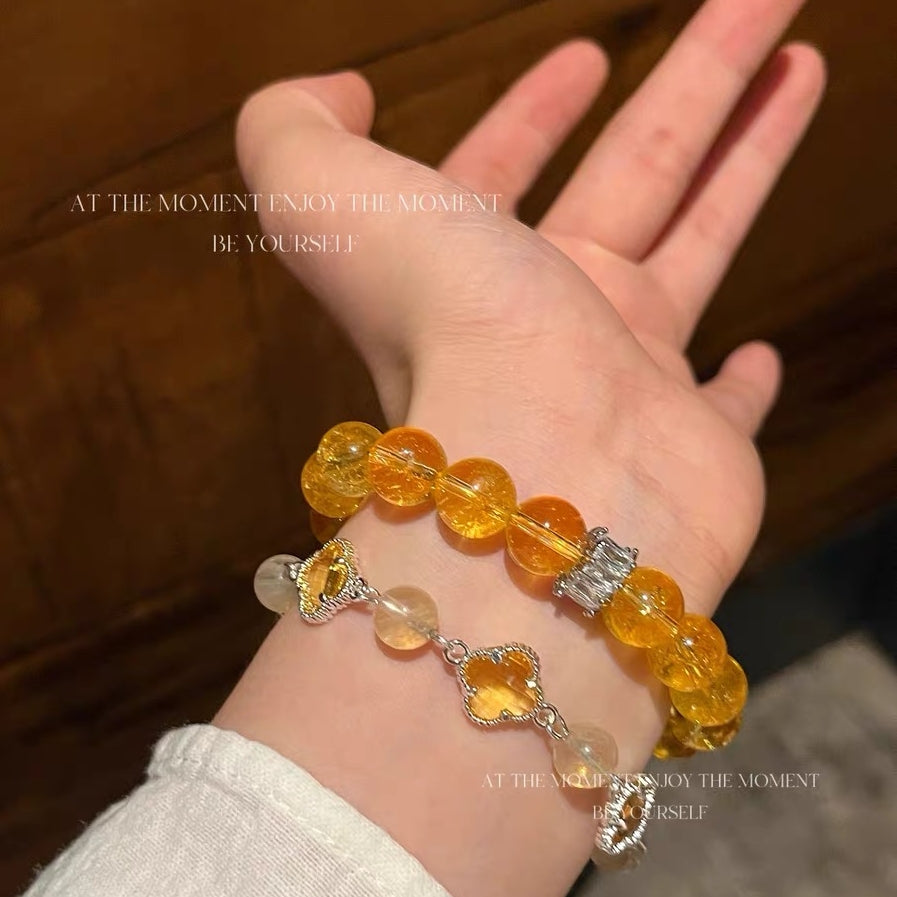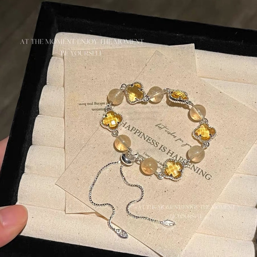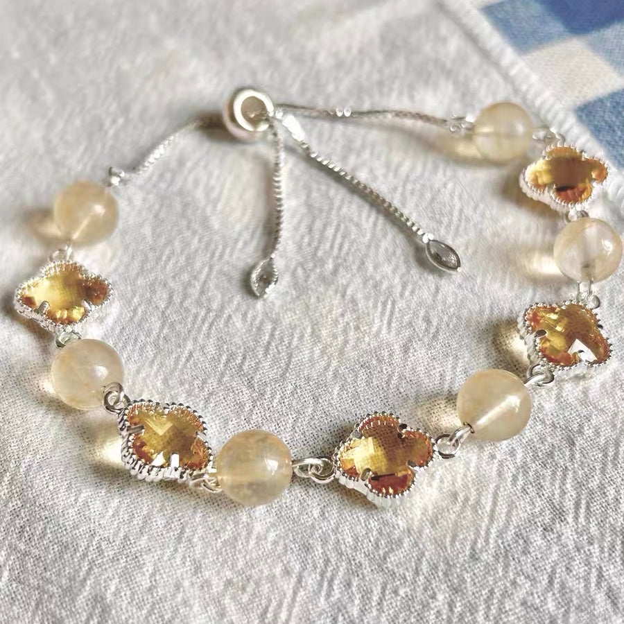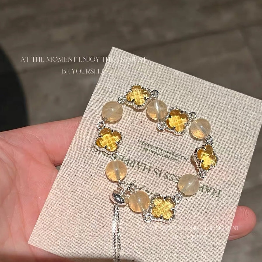 「開運・金運」幸運のクローバーとイエローフローライトの金運ブレスレット - 知恵と幸運で富を掴む