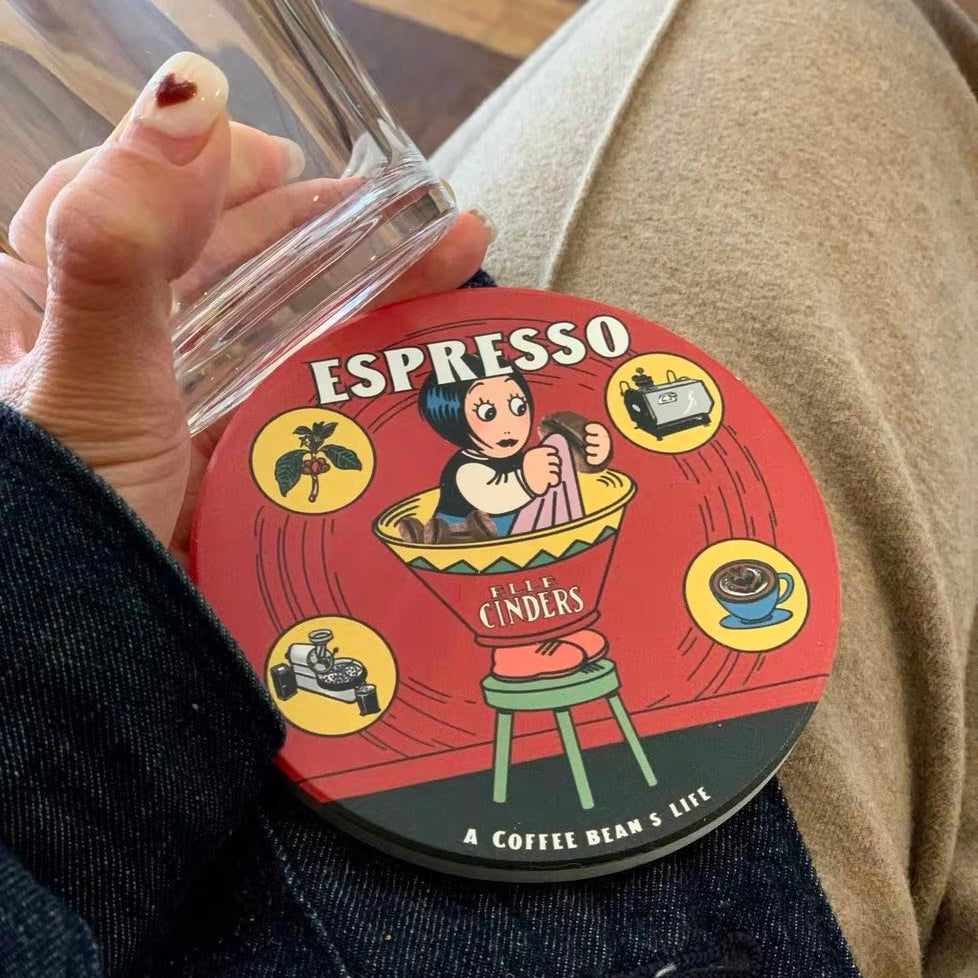 セット四角商店風 速乾ダイアトマイトコースター 名入れ対応の陶器マグカップ用コースター