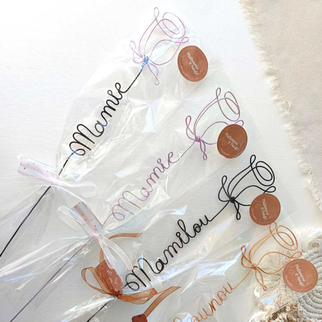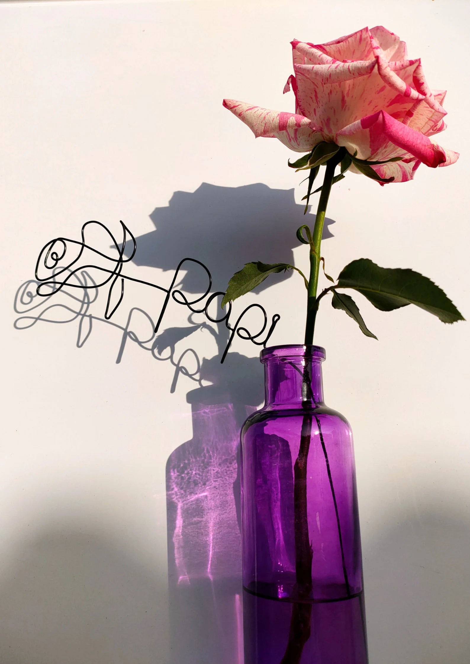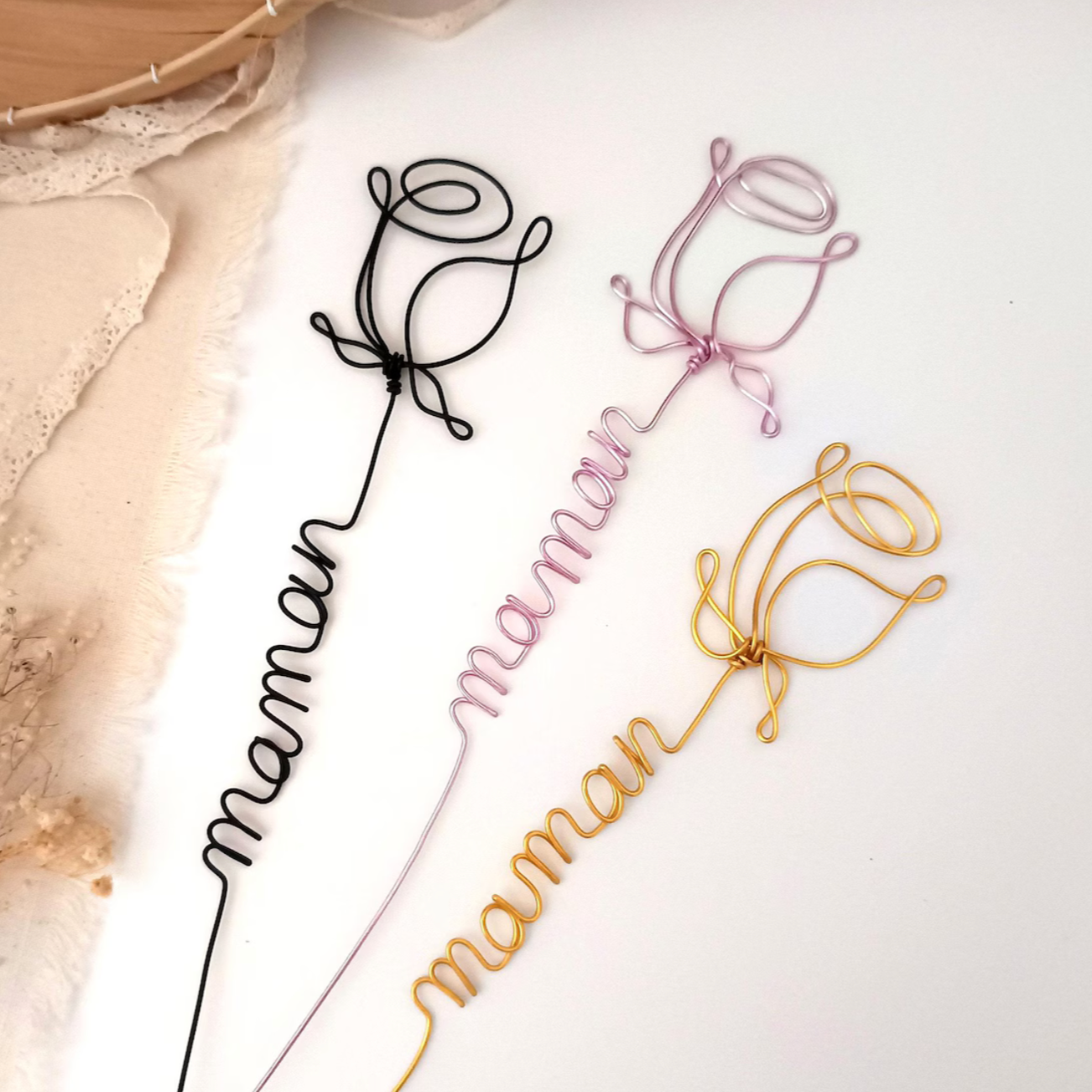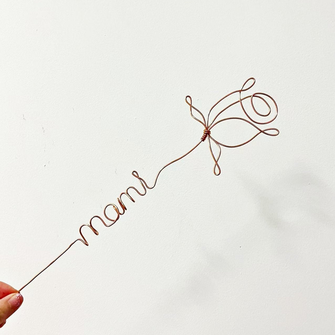 名前、言葉、イニシャルをつけてパーソナライズできるワイヤーバラ。単独で花瓶に飾るもよし、ドライフラワーとともに寛ぐもよし。お気に入りの部屋に飾るのもいいですし、写真立ての近くに飾っても素敵です。花瓶に入れる場合は、茎の先を曲げるか、砂や小石で重しをつけてください。