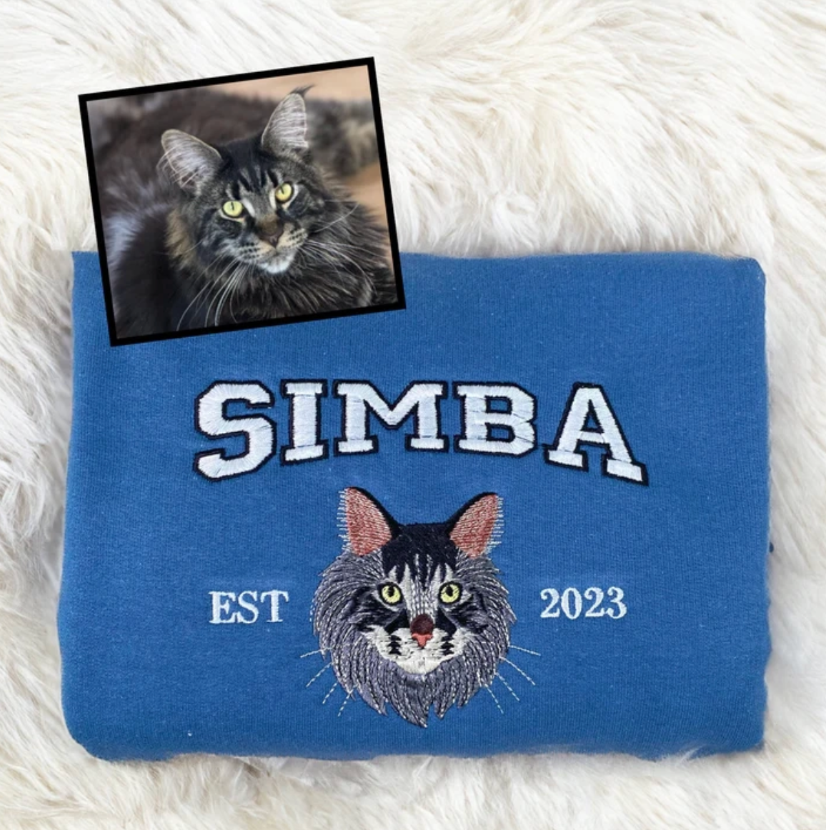 あなたの大切なペットのイメージと名前をスウェットシャツ(またはパーカー)に刺繍して、二人の絆を表現します。🐾