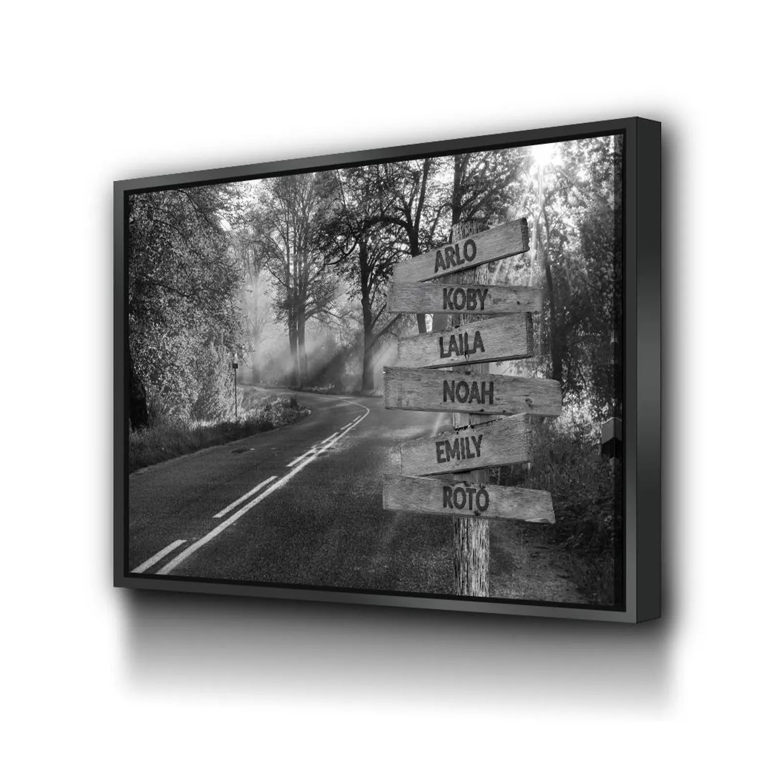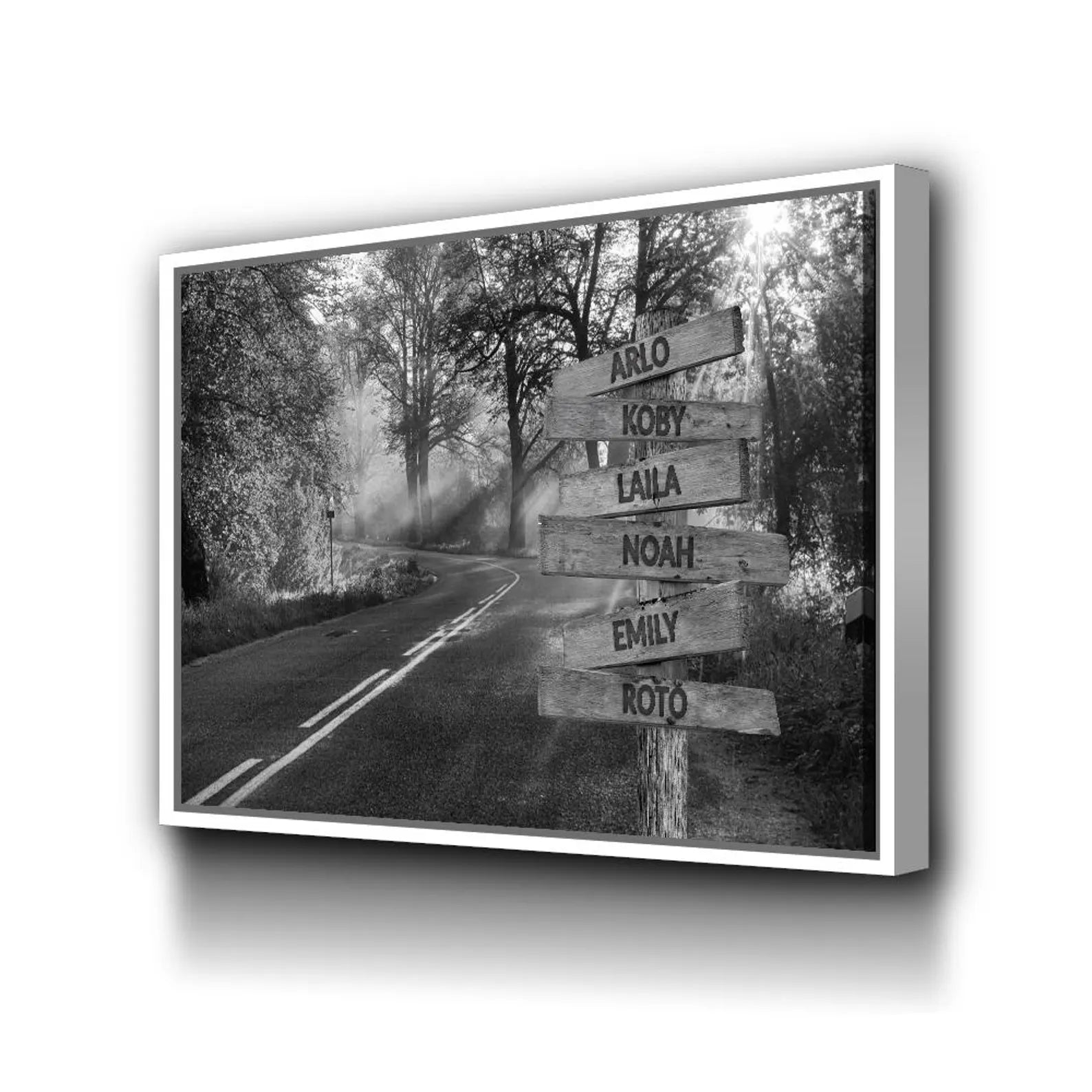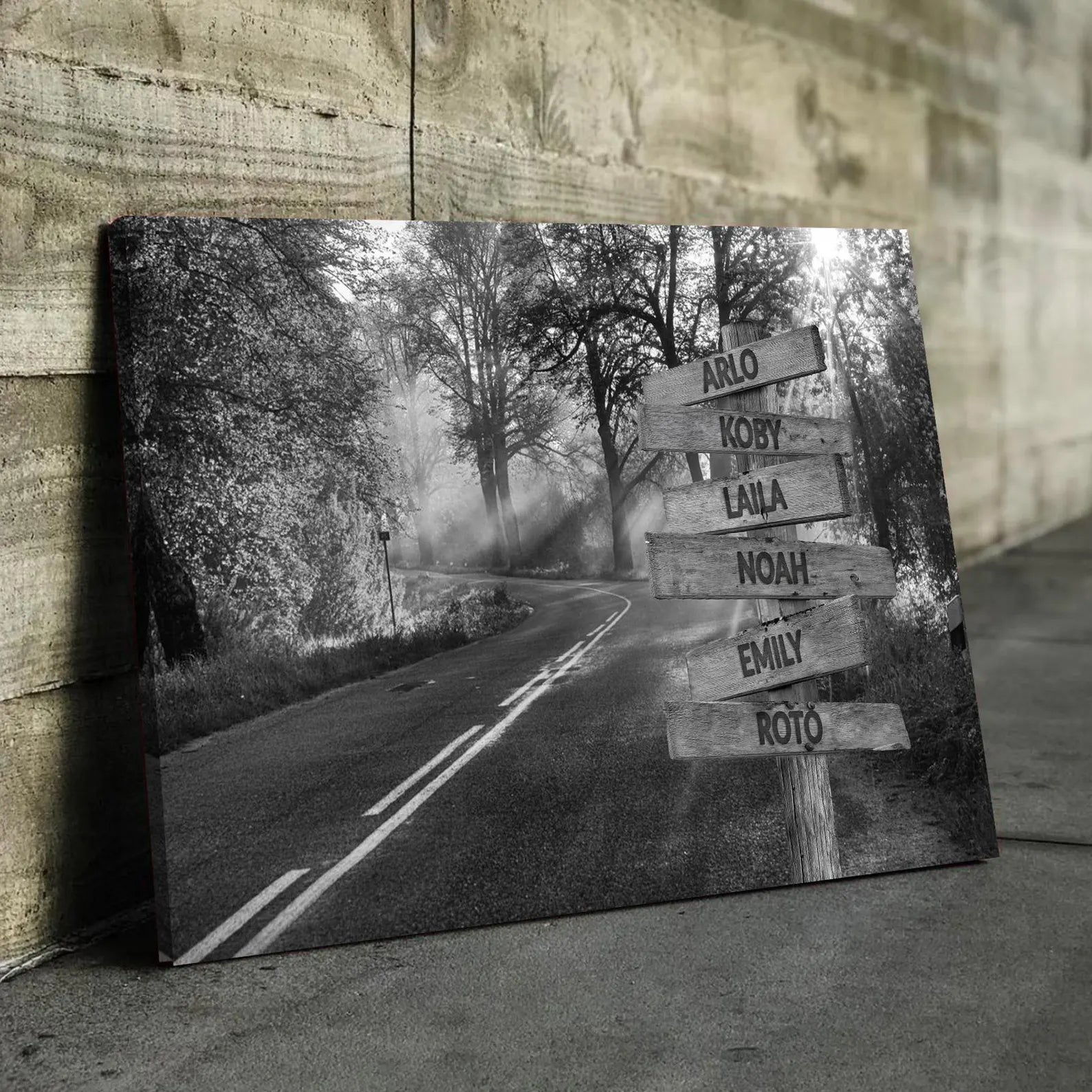 ご家族と一緒につくった思い出を形にした、カスタムメイドの家族ロードサインキャンバス。これはただの絵ではなく、皆さんが共に歩んできた時間の出発点です。