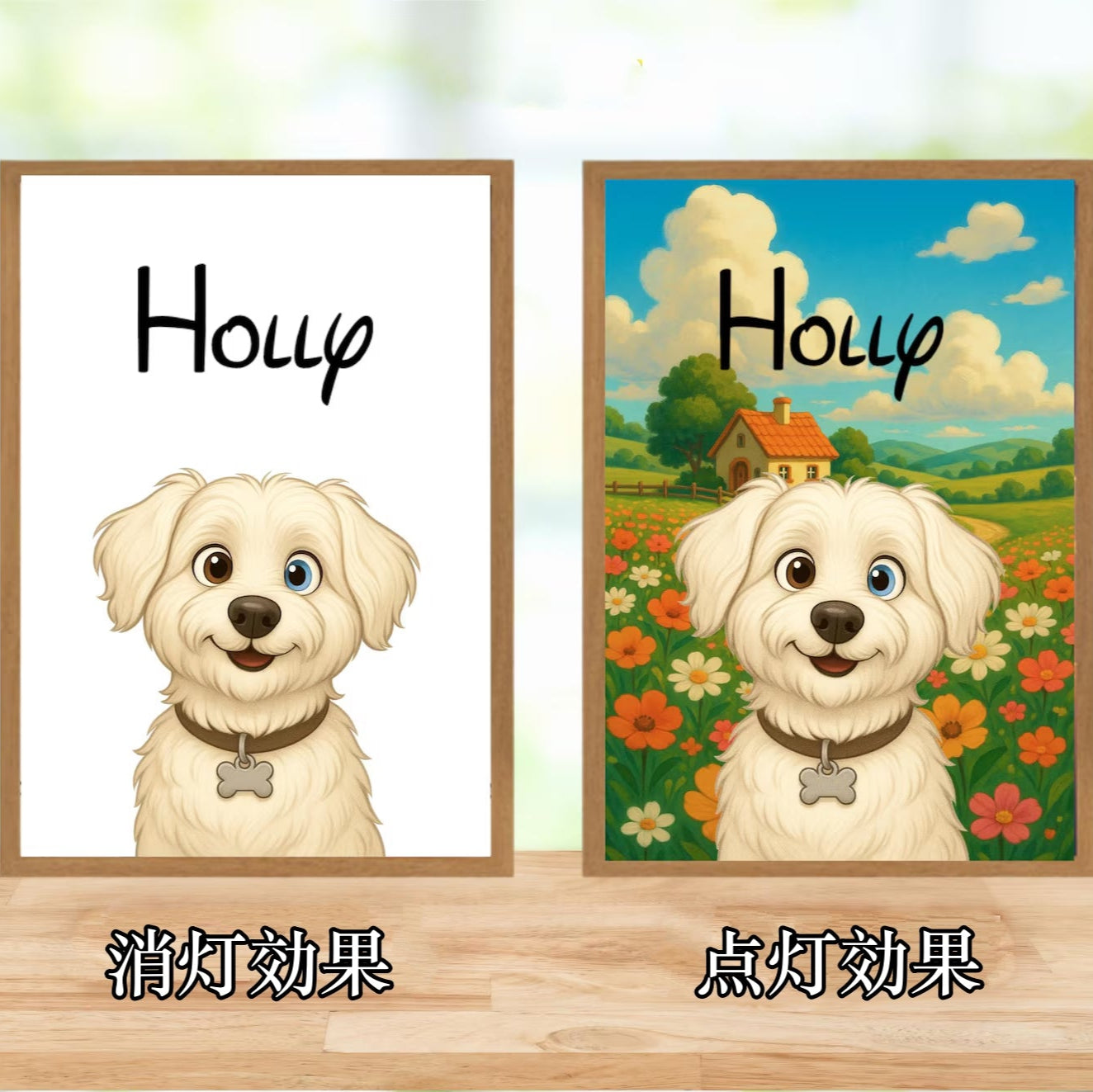 このカスタムLEDペットポートレートで、あなたの毛茸の仲間を大切にしてください。愛らしいペットのユニークな魅力を称える素晴らしいライトアップ絵画です。ペット好きにはぴったりのこのLEDアート作品は、犬、猫、その他のペットのための感動的な記念品や追悼品です。