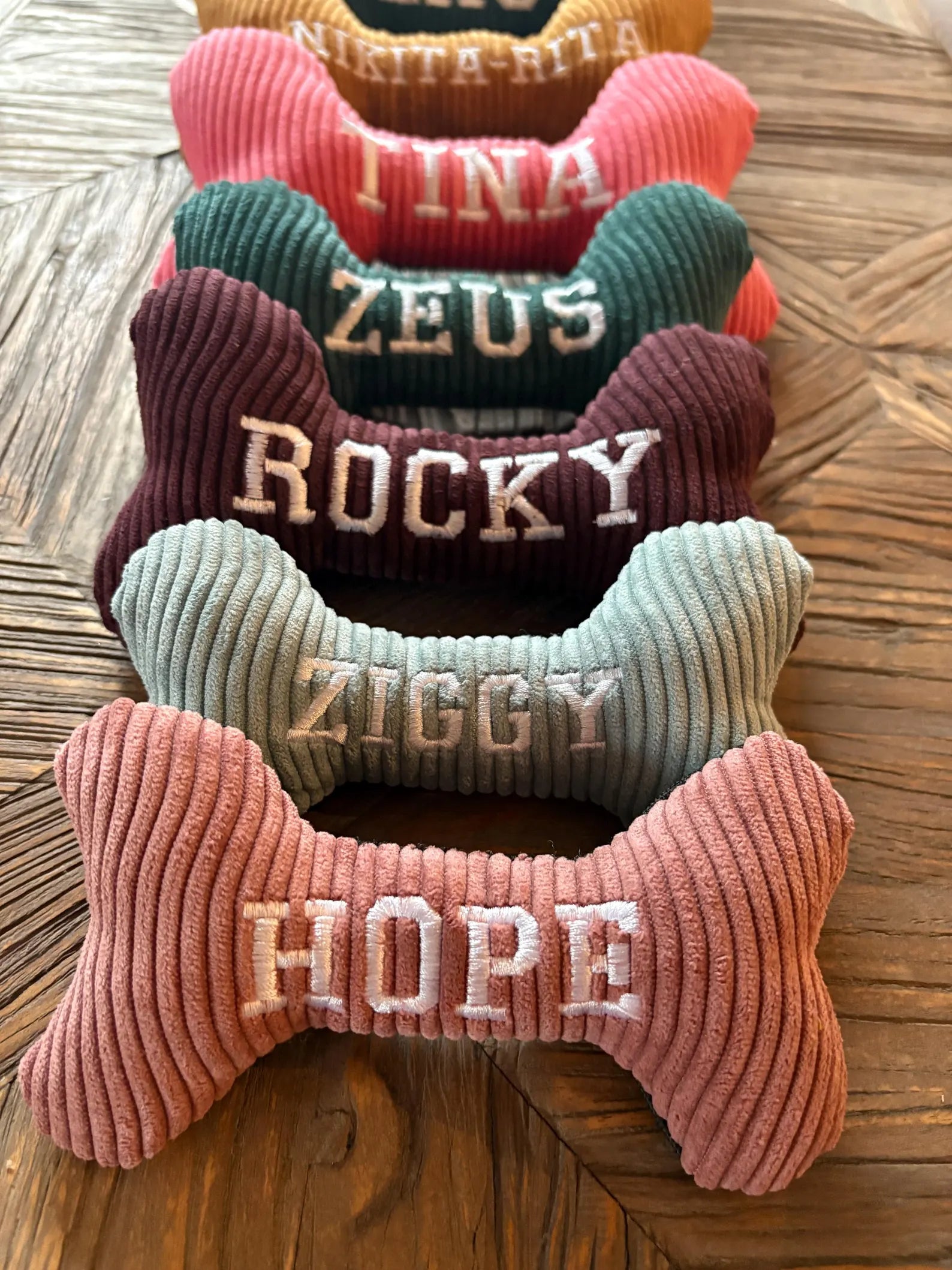 🐶🐾🦴 愛犬にユニークでパーソナライズされた骨形のおもちゃをプレゼントしてみませんか!このおもちゃは、楽しさと耐久性を兼ね備えたデザインで、あなたの四足の友を喜ばせることでしょう。前面はソフトなコーデュロイ生地でできており、愛犬の名前を刺繍することでパーソナルなタッチを加えています。背面は耐久性のある麻生地でできており、噛みつきにも最適です。