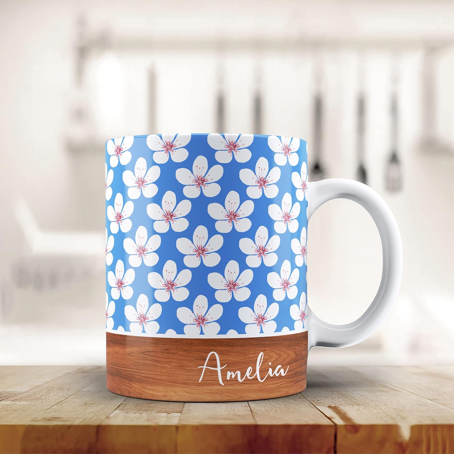 パーソナライズされた花と葉のパターン 木製スタイルの名前入り「Sakura」