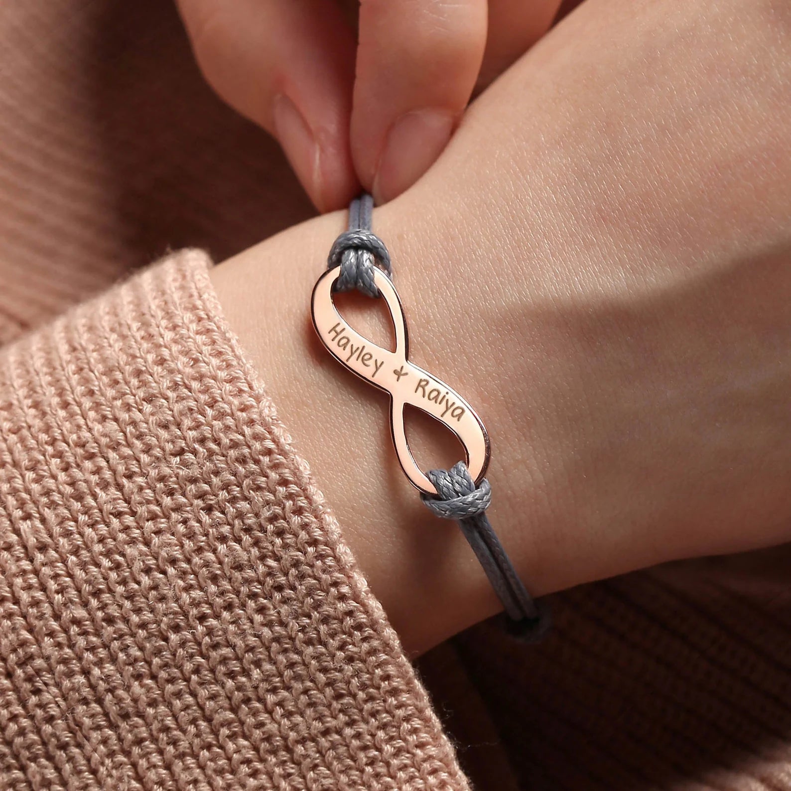 ブレスレット 名入れ 女性 イニシャル カスタマイズ オーダーメイド ネームブレスレット プレゼント ギフト 名前入り ロープ 調節可能 インフィニティ