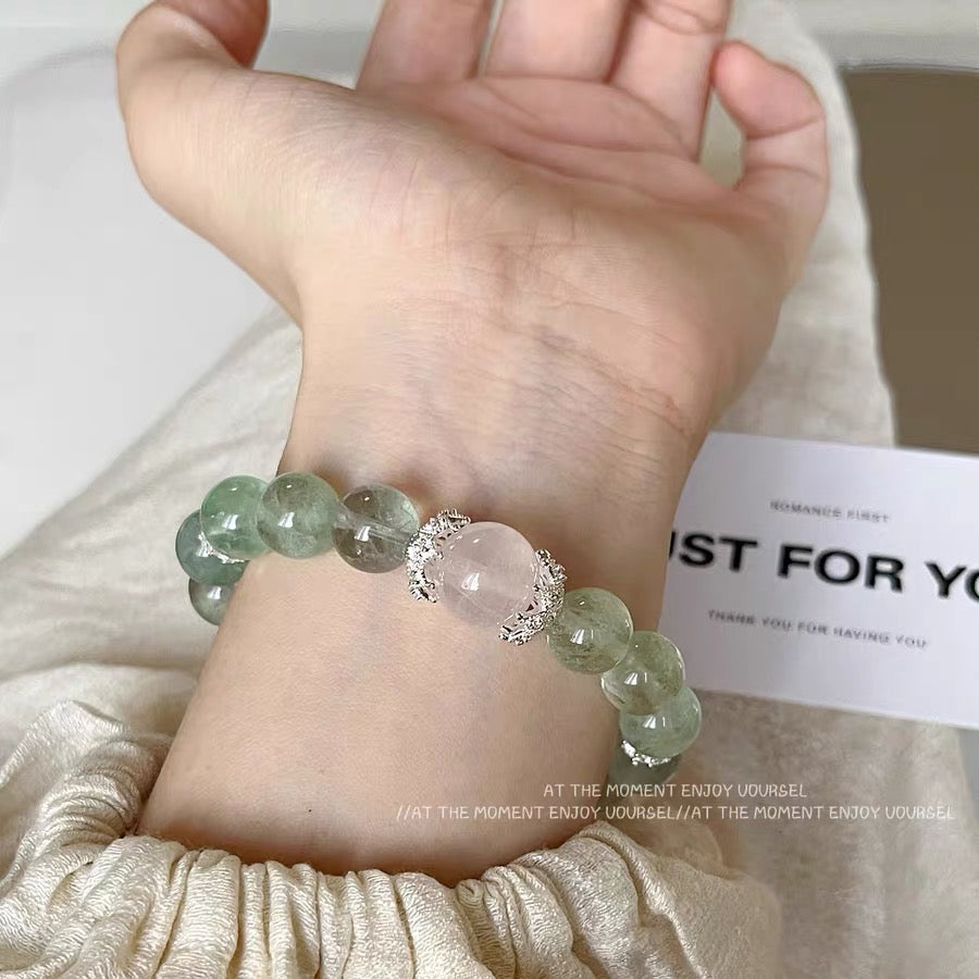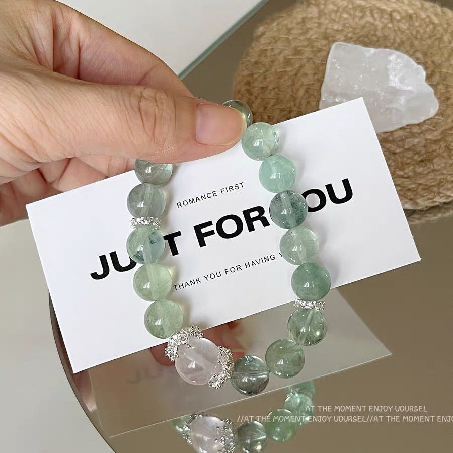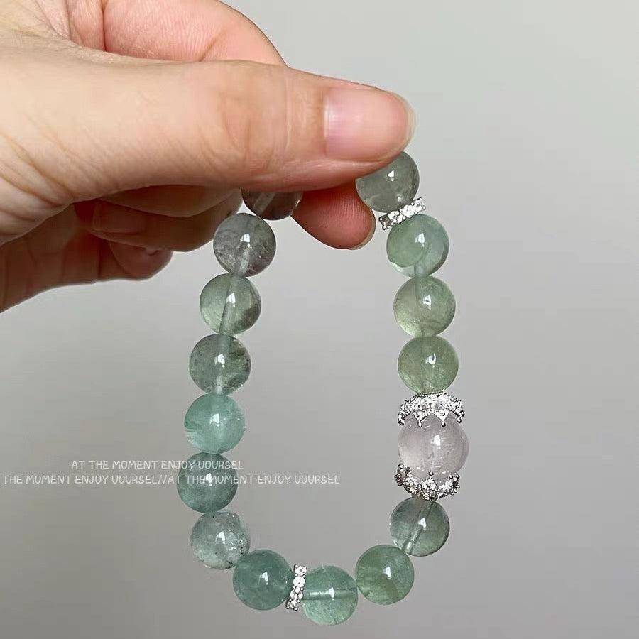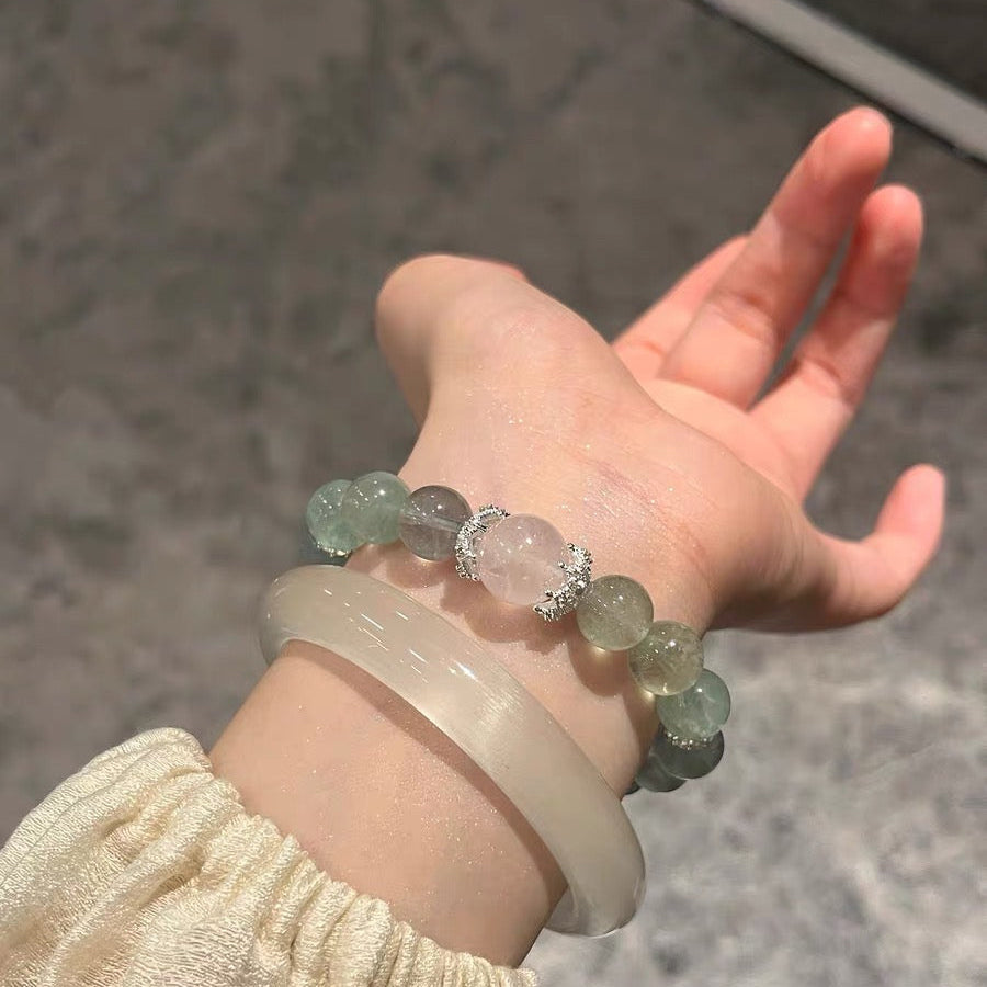 強力な浄化作用を持つ「クリスタルクォーツ」と、ハートチャクラを癒し集中力を高める「グリーンフローライト(緑蛍石)」の組み合わせ。停滞したエネルギーを洗い流し、心と思考をクリアにし、新たな成長へと導きます。