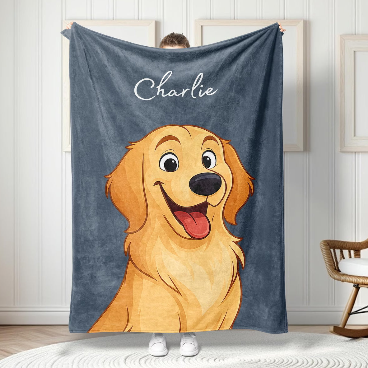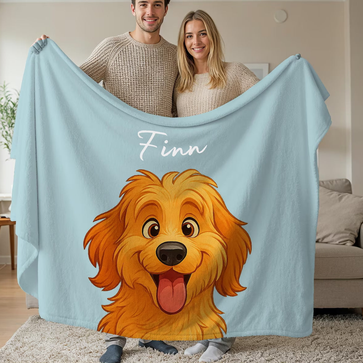 名入れ顔写真ブランケット|ペット ディズニー風のアニメスタイル
