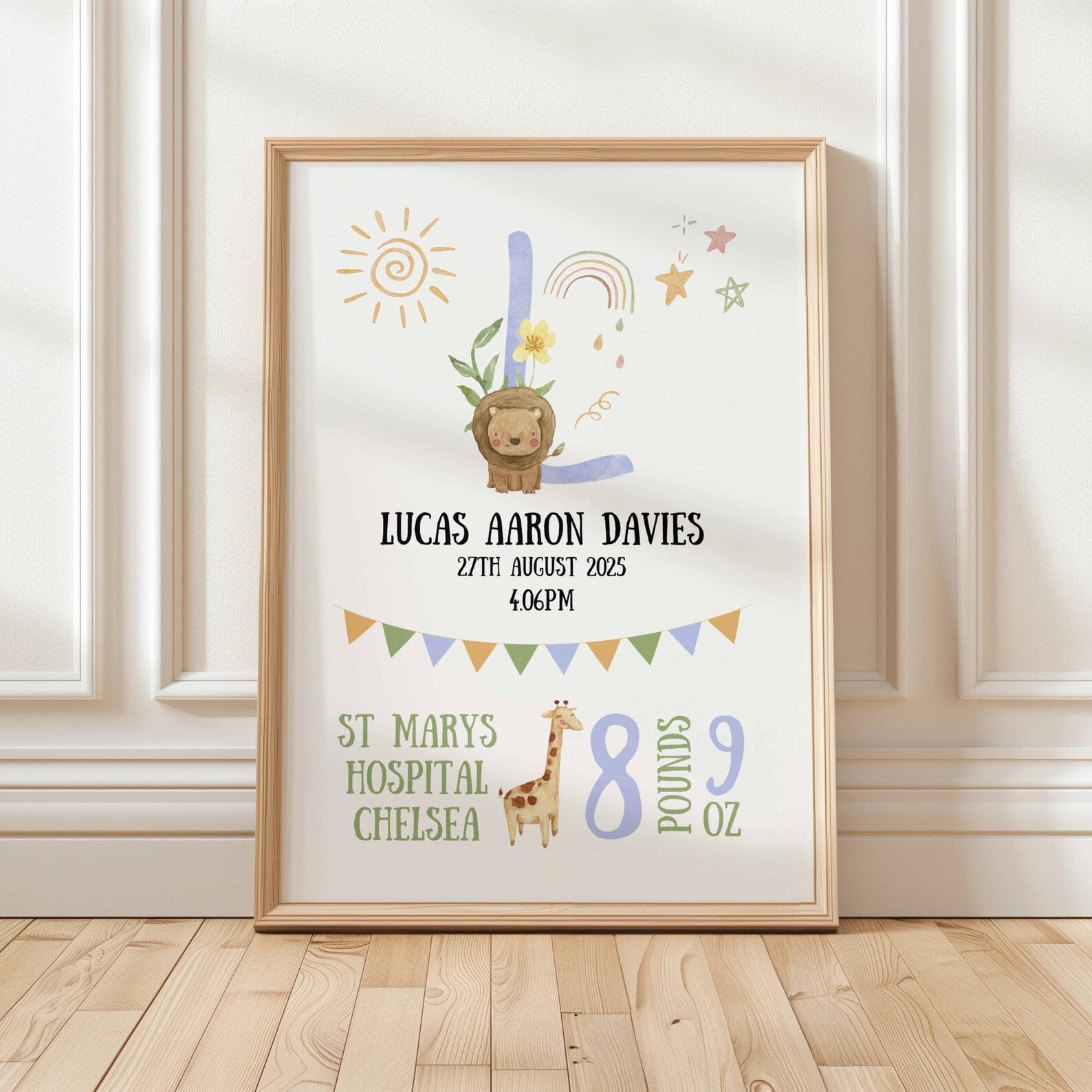 【名入れ】 ベビー 出生記録 メモリアルポスター アニマルデザイン 命名書