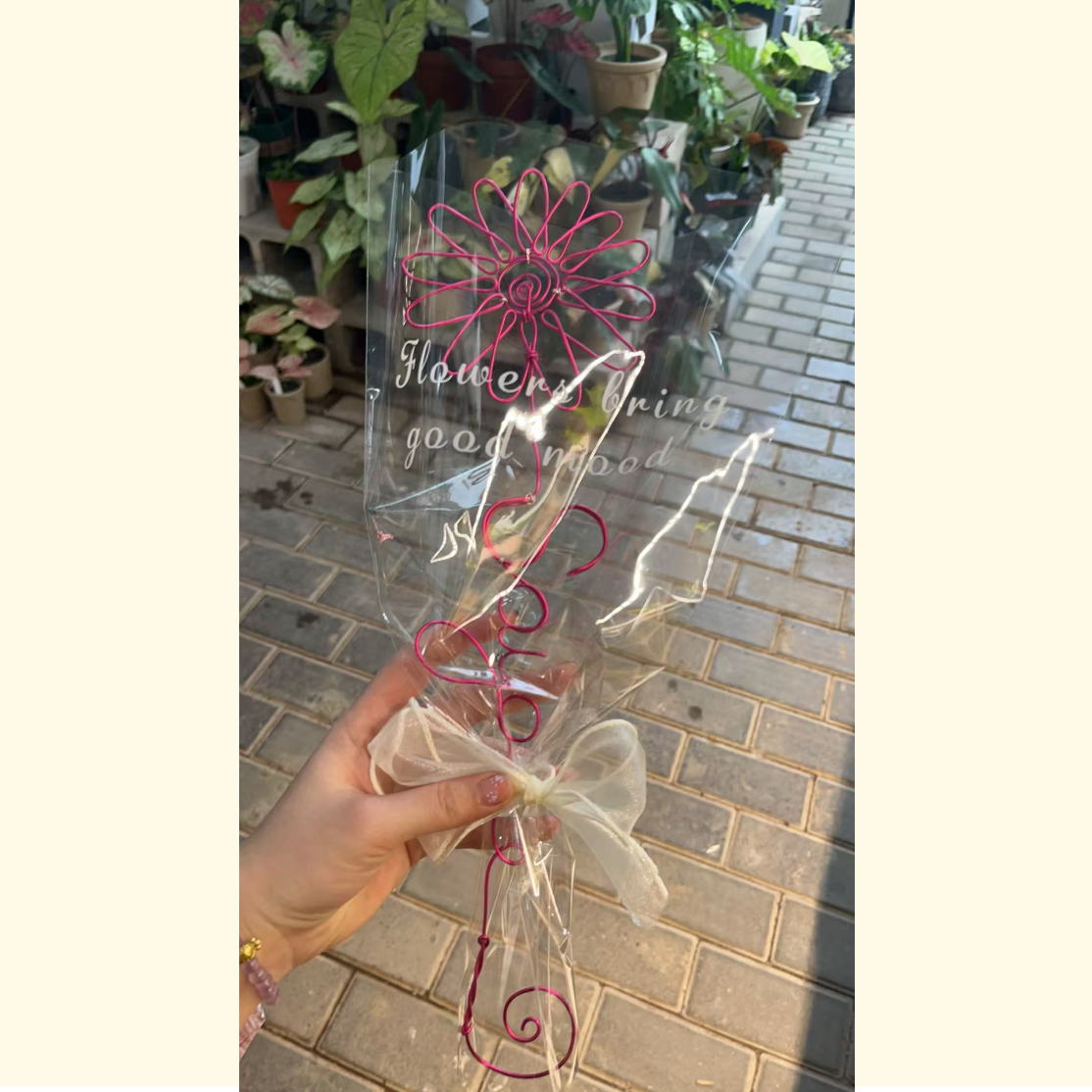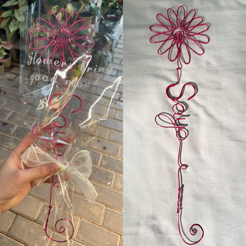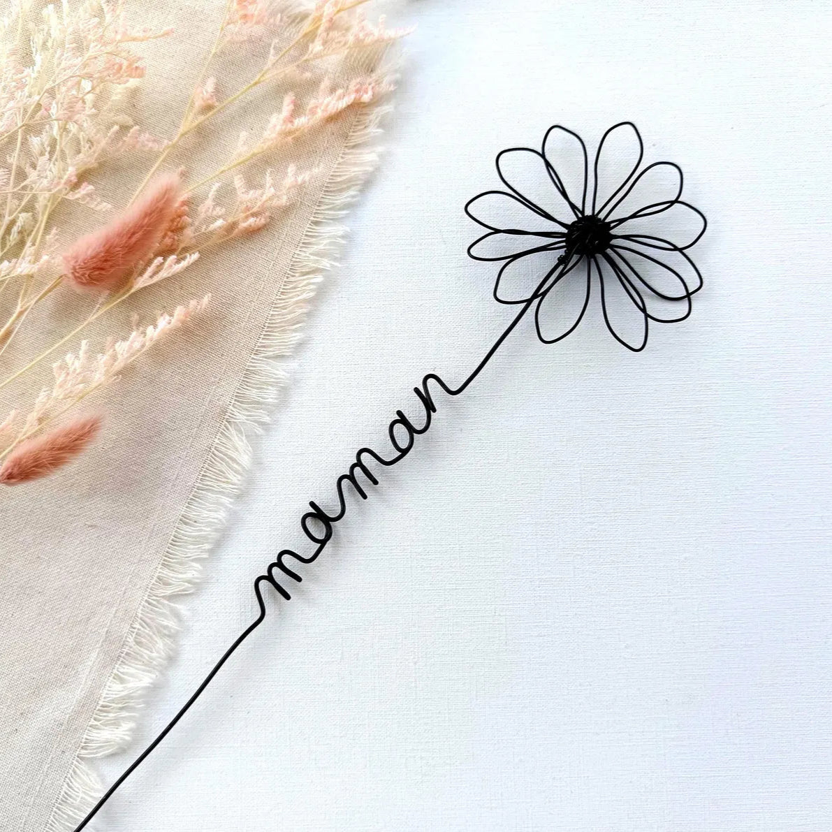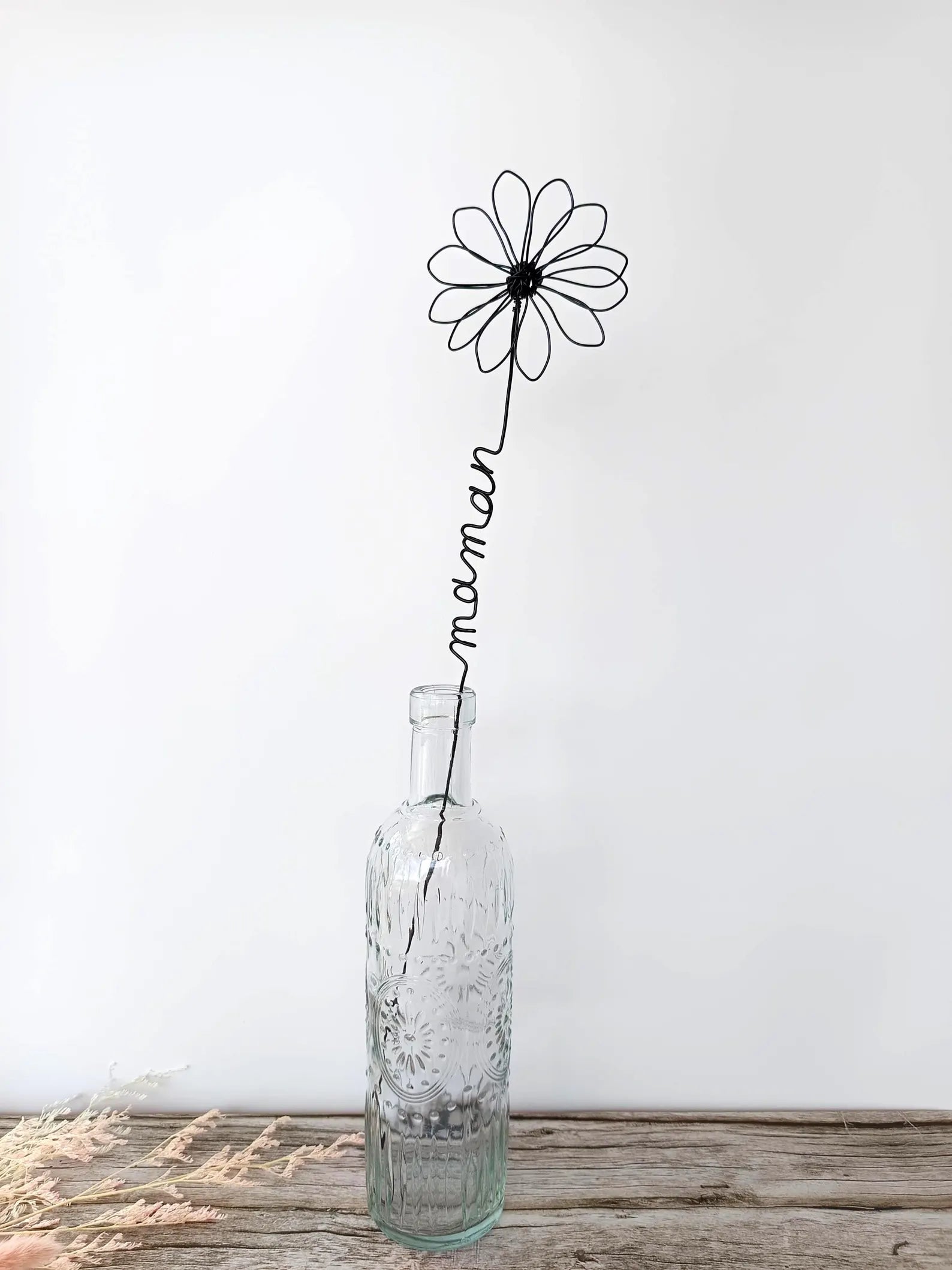名前、言葉、イニシャルをつけてパーソナライズできるワイヤーバラ。単独で花瓶に飾るもよし、ドライフラワーとともに寛ぐもよし。お気に入りの部屋に飾るのもいいですし、写真立ての近くに飾っても素敵です。花瓶に入れる場合は、茎の先を曲げるか、砂や小石で重しをつけてください。