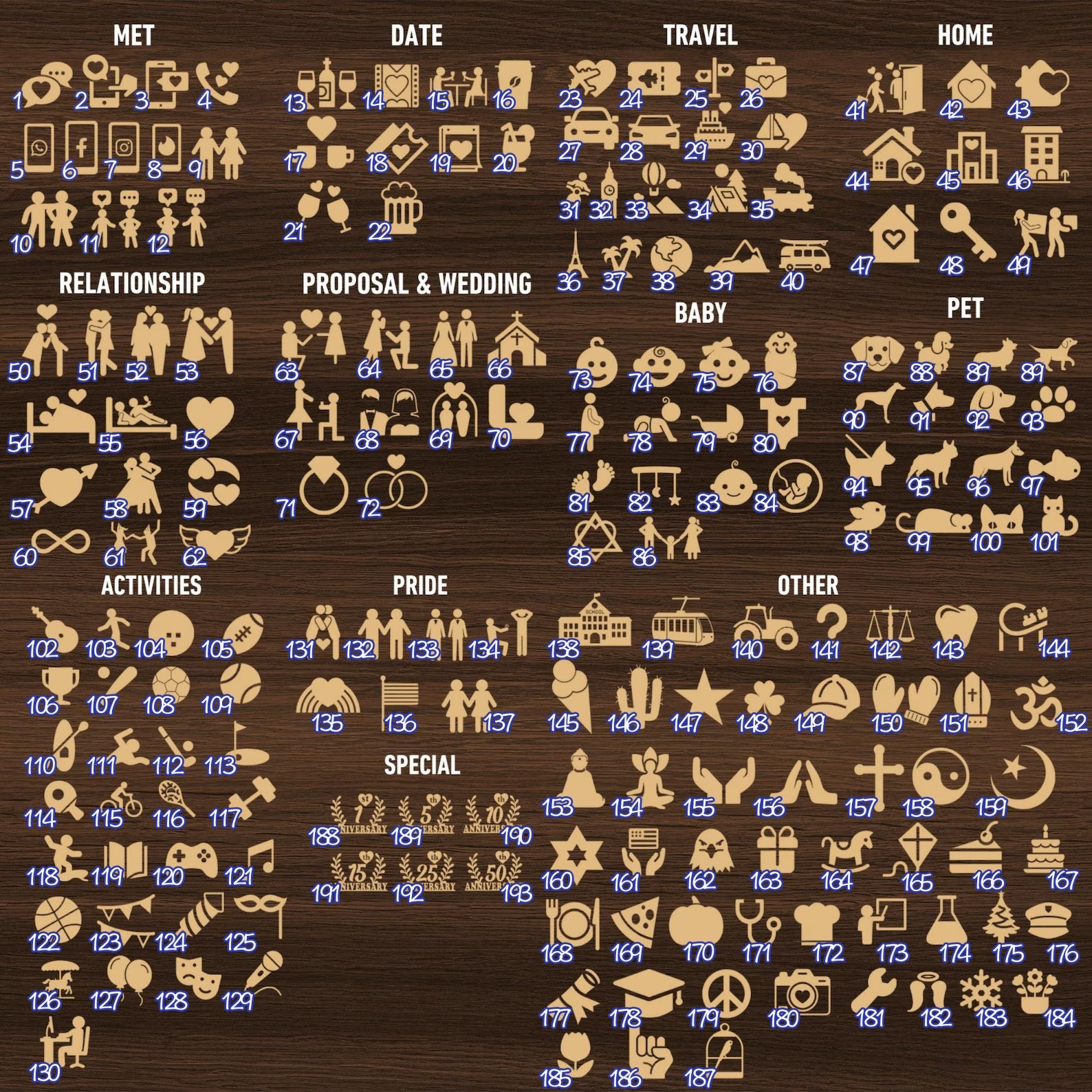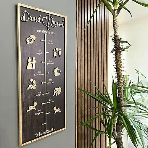 このカスタマイズできる木製のタイムラインは、記念日ギフトにぴったりで、関係の節目を祝うユニークな方法を提供します。初めての1年を祝うのか、10年間の幸せを祝うのかに関係なく、それぞれのアイコンはあなたの個別の旅を反映するように調整できます。