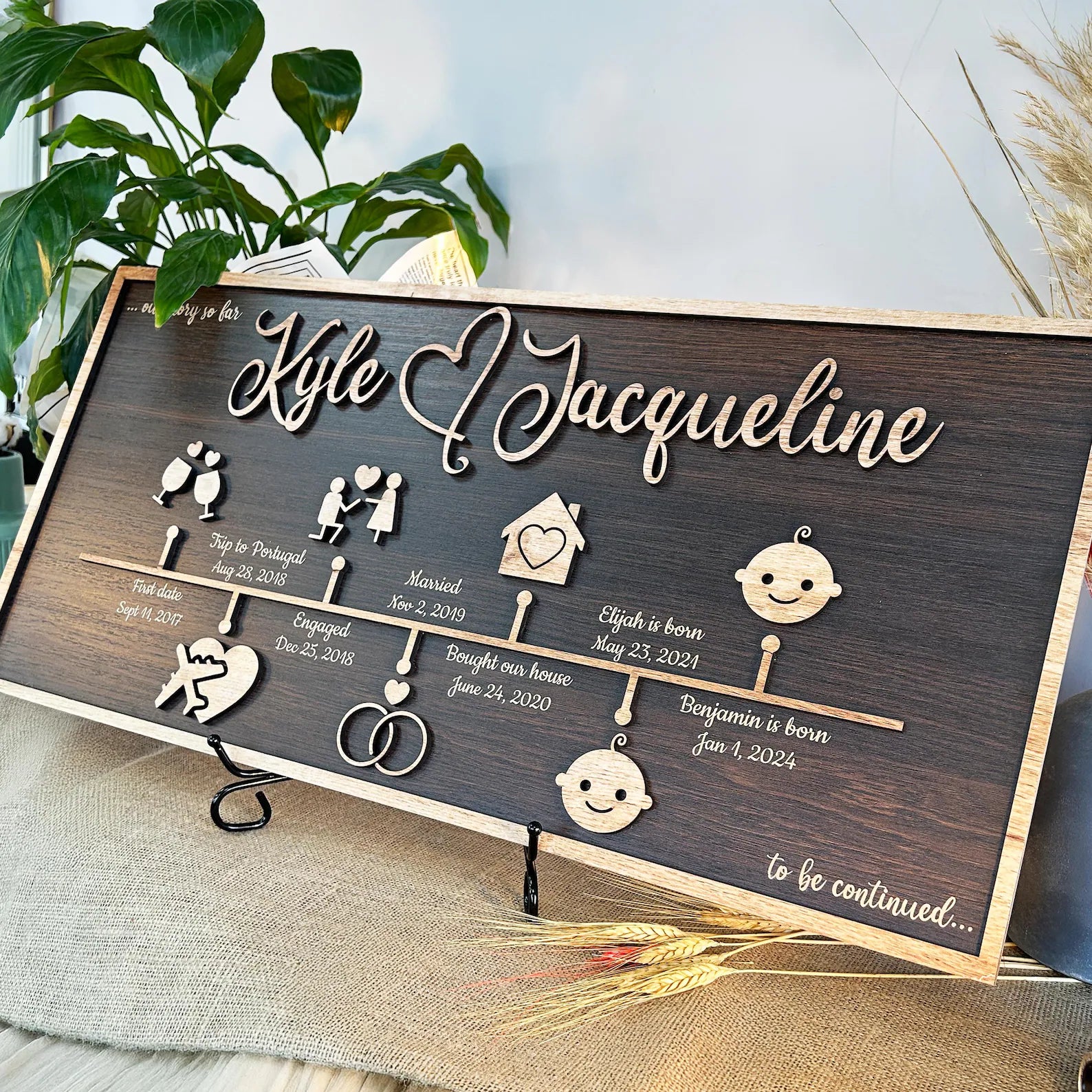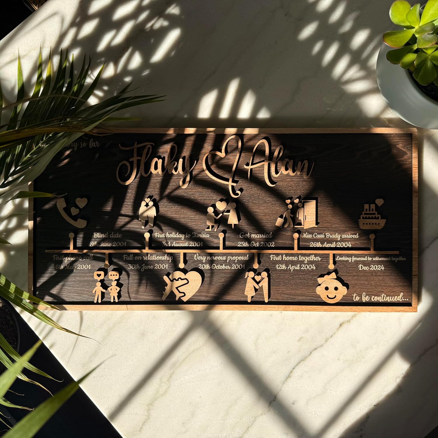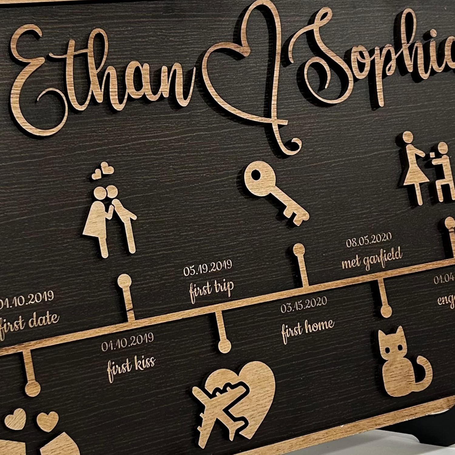 この美しく作り上げられた木製のタイムライン装飾で、あなたの愛の物語の本質を捉えてください。このユニークな作品はただの飾り物ではなく、あなたたちが一緒に過ごした最も愛しい瞬間を通じた個人的な旅です。