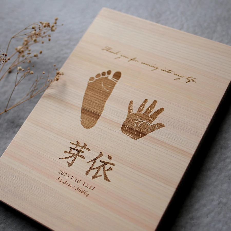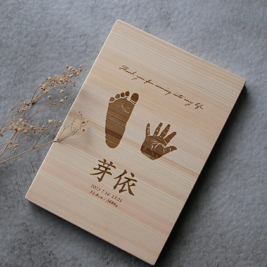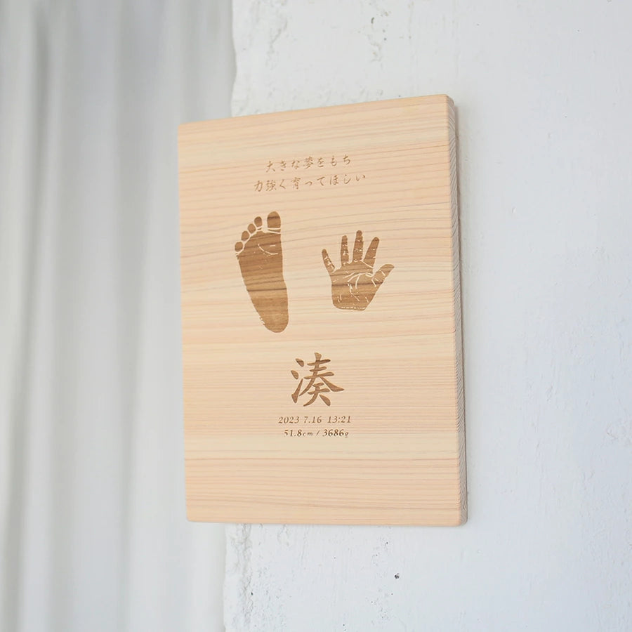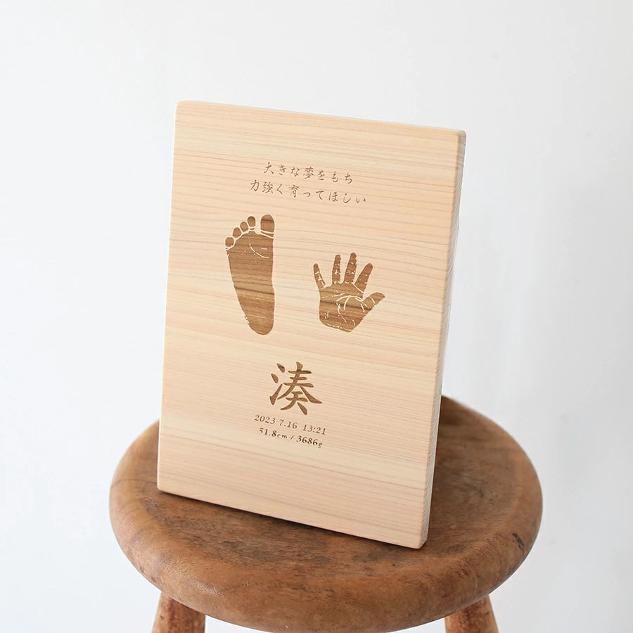 【木製名前札】手形 足型 メッセージ入 檜の命名書 Name shield 盾型 命名札