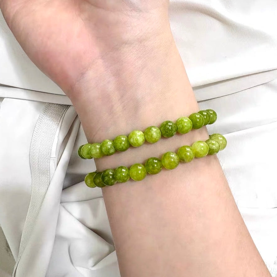 太陽のエネルギーでネガティブを浄化する「ペリドット」と、穏やかさと言葉の力を高める「カルセドニー」の組み合わせ。心を軽やかにし、人間関係を円滑にする、バランスの取れたブレスレットです。
