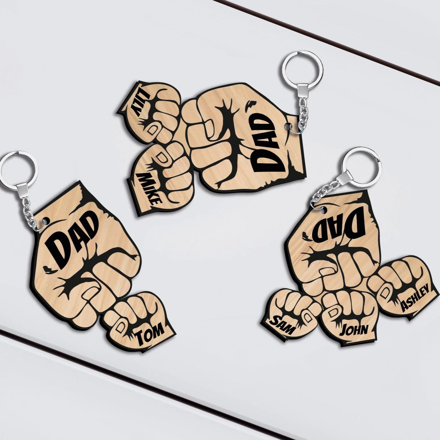 このキーチェーンは、父の日のお祝いにぴったりのユニークな贈り物です!家族のメンバーがこの贈り物に参加し、父親に強い家族であることを思い出させたい場合に、それぞれのキーチェーンが異なる人数に対応できるように設計されています。