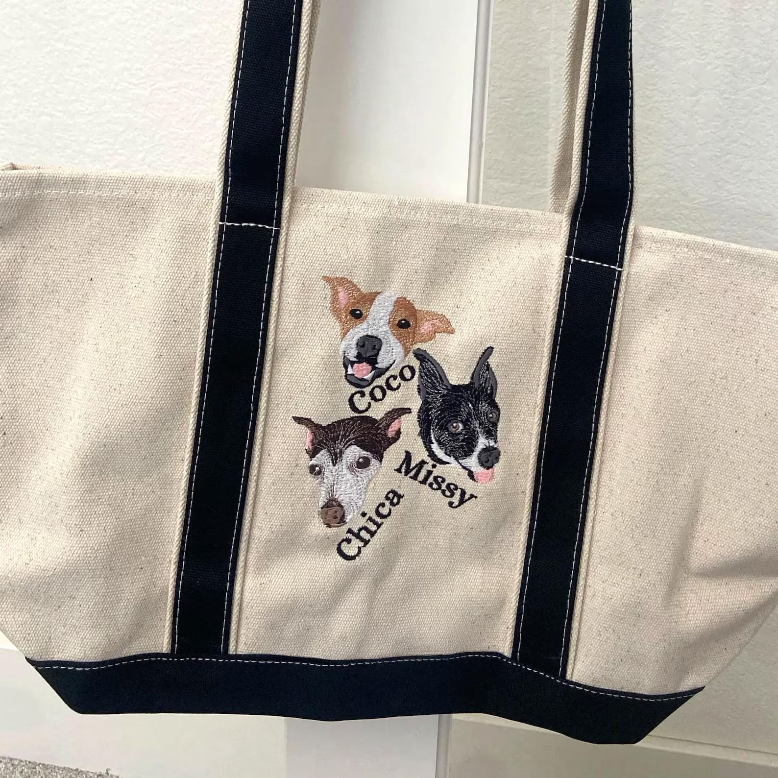 片面刺繡♪キャンバストート 名入れペット写真による作成トートバッグ♪ お散歩バッグ♪おしゃれバッグ♪