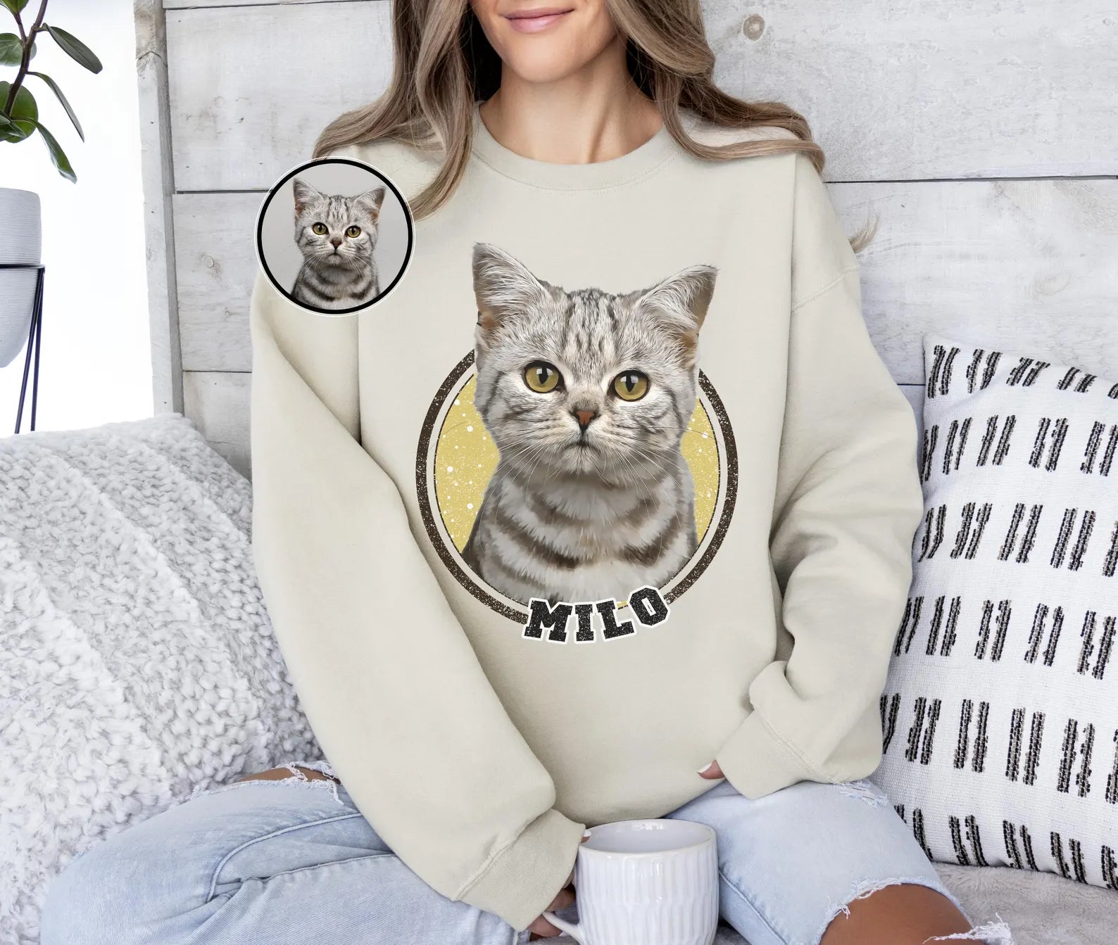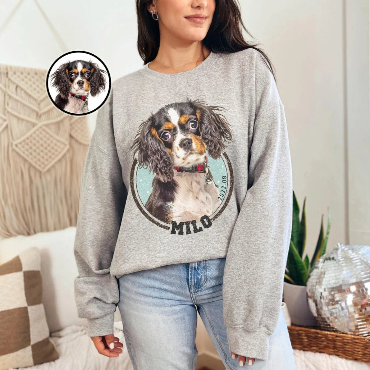 犬/猫/ペット/子供の写真 アバター を入れたカスタマイズされた長袖スウェットシャツ 星空