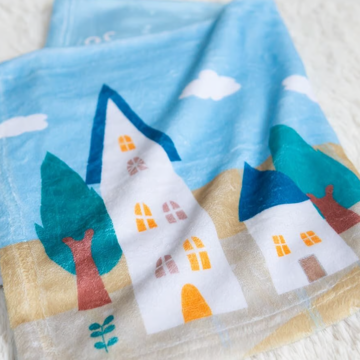 身長計付き 名前入りブランケット はりねずみと遊ぼ 出産祝いの名前入り 家 縦版