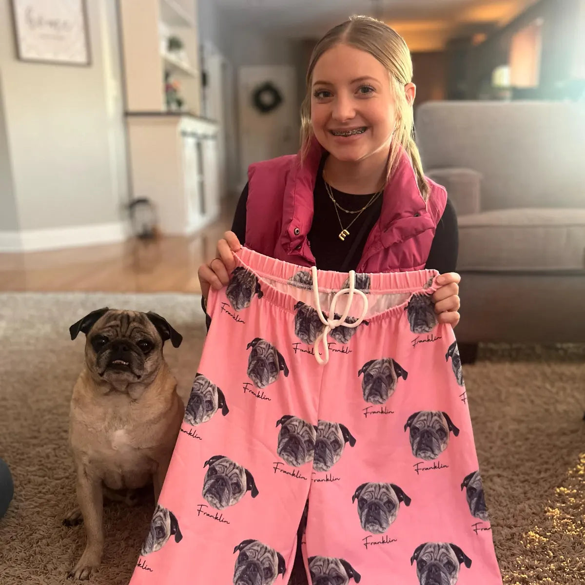 ペットの写真と名前を使用したカスタムペットポートレートパジャマパンツ 男女兼用