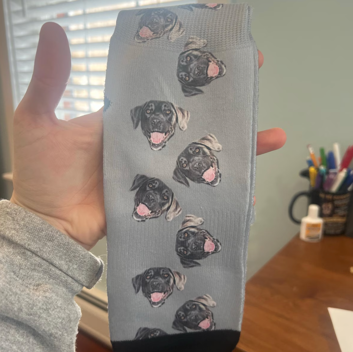 あなたの愛するペットの顔がプリントされたオーダーメイドのソックスを手に入れましょう!犬を愛する人への最高の贈り物です!どんな祝日、誕生日、記念日にもぴったりです!オレゴン州ポートランドの地元のパートタイムのママたちが手作りしています。すべてのペアはオーダーメイドです。