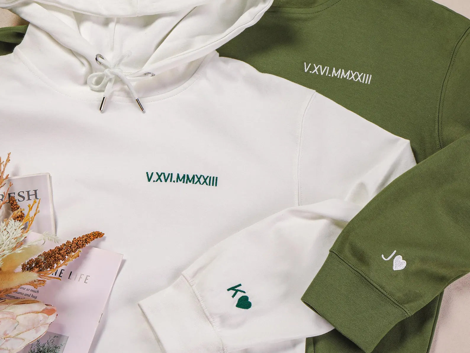 「2人だけの記念日を刺繍に込めて|世界に一つのマッチングパーカー」