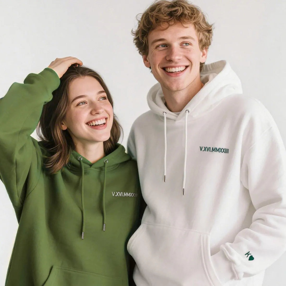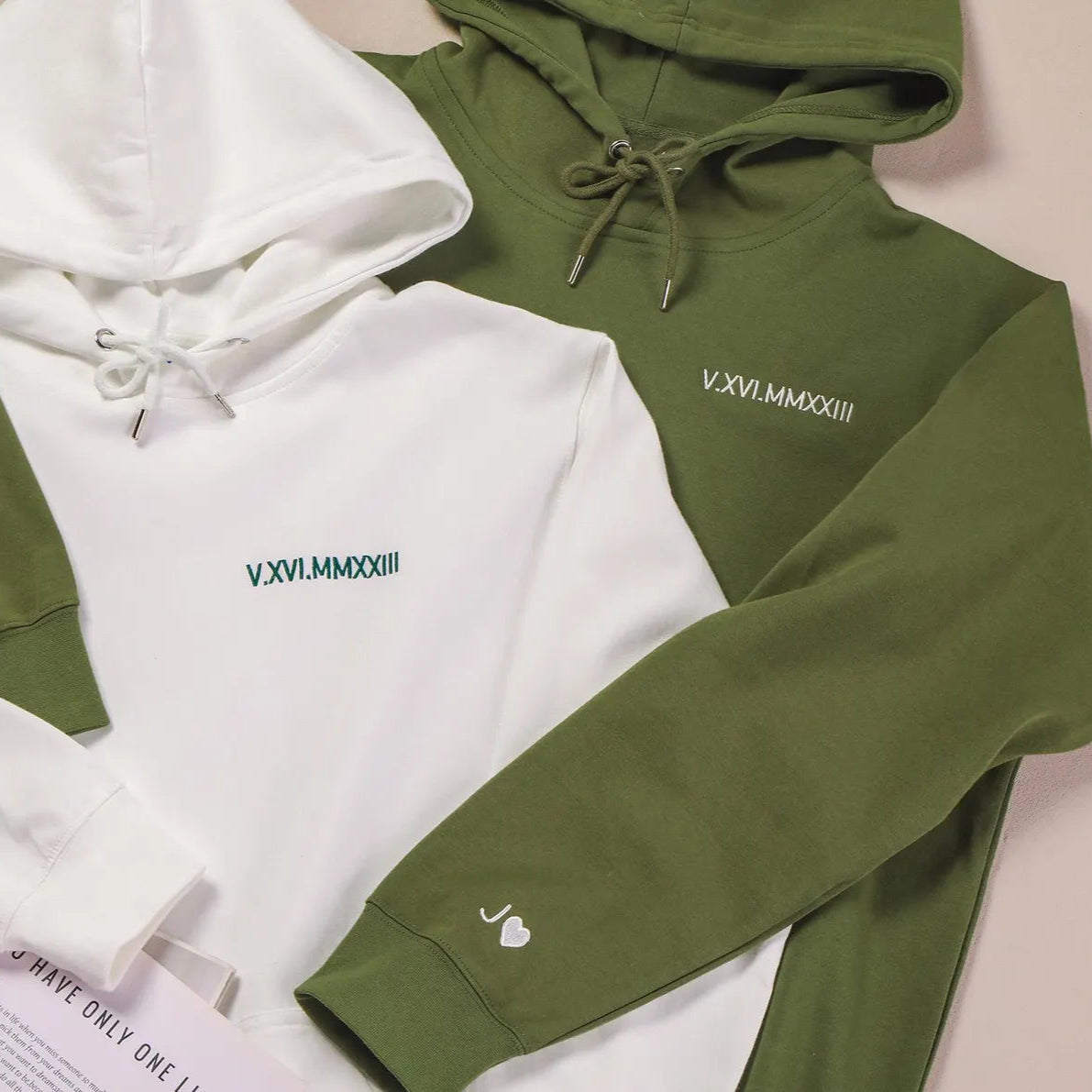私たちのパーソナライズ刺繍ローマ数字パーカーは、