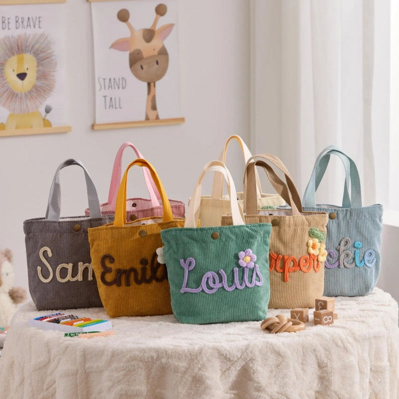 毎日の生活に可愛さと便利さを添える、小型コーデュロイハンドバッグ。様々なシーンで活躍する、マストハブなアイテムです。