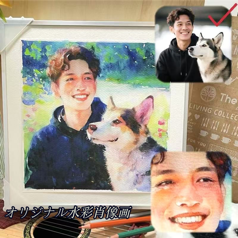 ❗️送料は無料 手作りの水彩画 オリジナルです |肖像画カスタムペイント家族の肖像画誕生日プレゼント卒業ギフトボックス