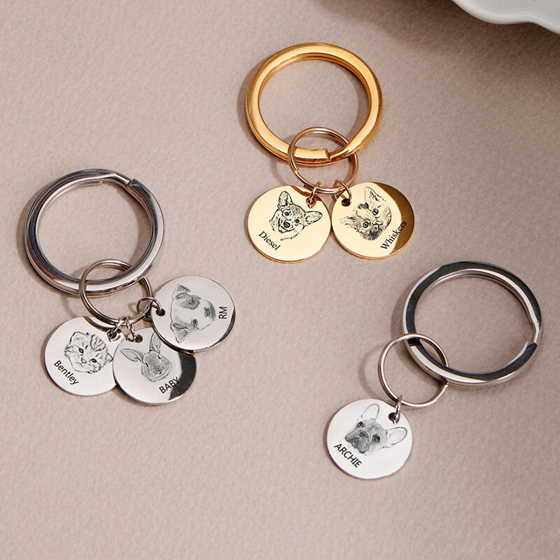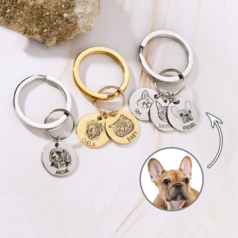 犬 猫 ペット 写真 名入れ 刻印 ペアキーホルダー カスタマイズ(プレート1枚から)