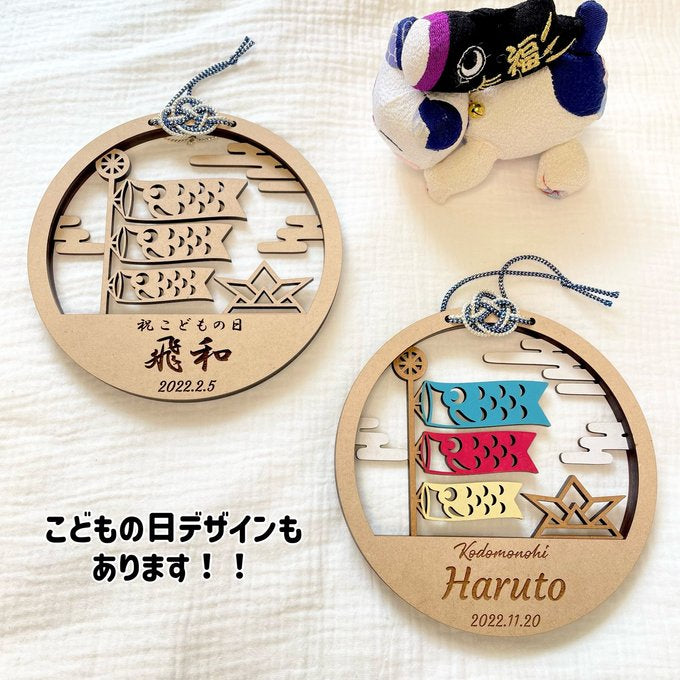下部にはお子様のお名前、生年月日を刻印する事ができます。